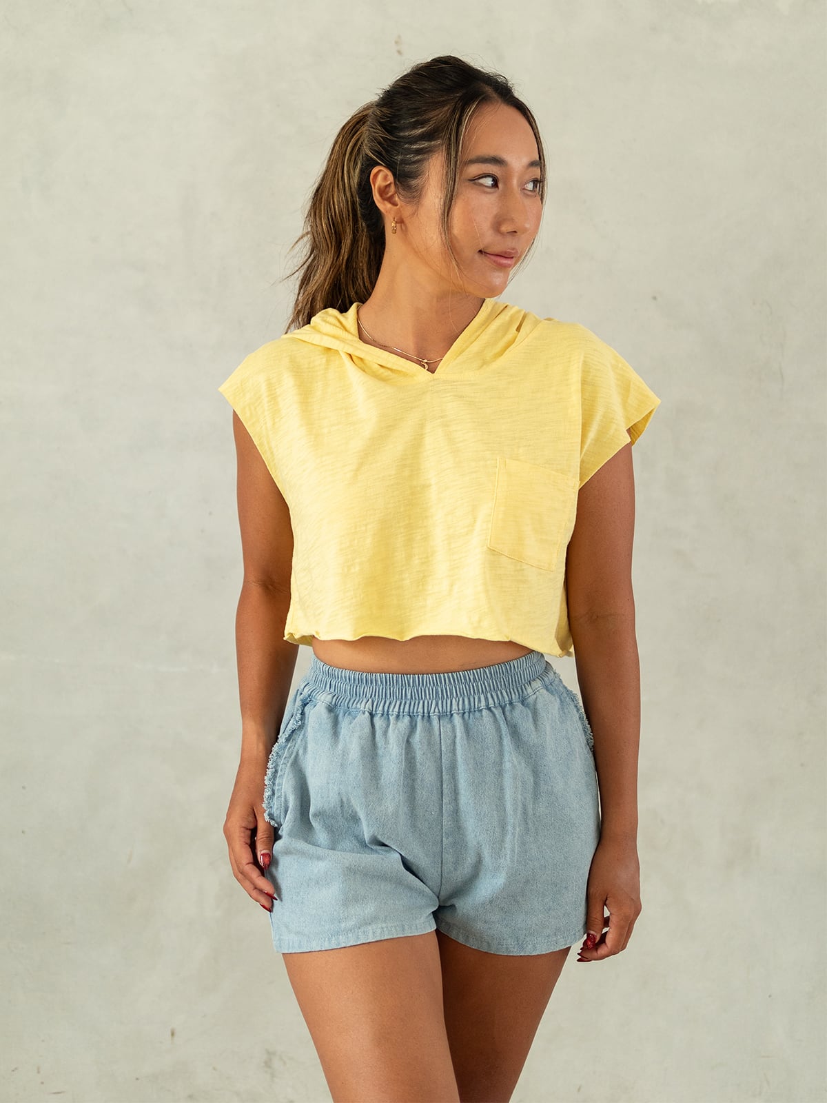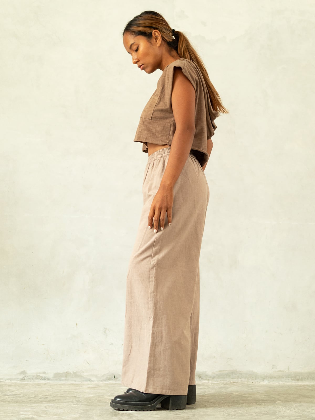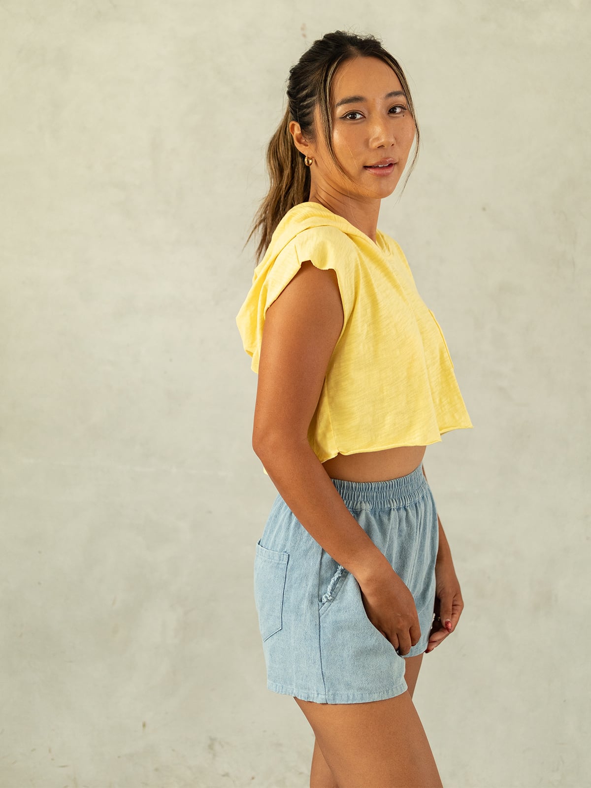 動きやすい、程よいルーズフィットのクロップド丈で、ワイドパンツにも、タイトなシルエットにも相性よし。