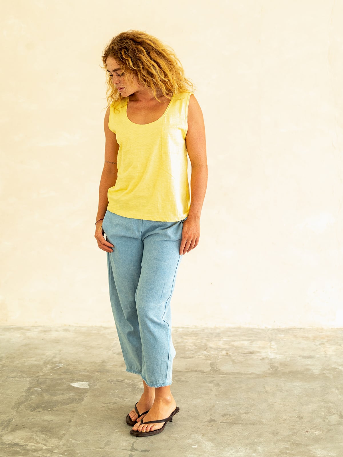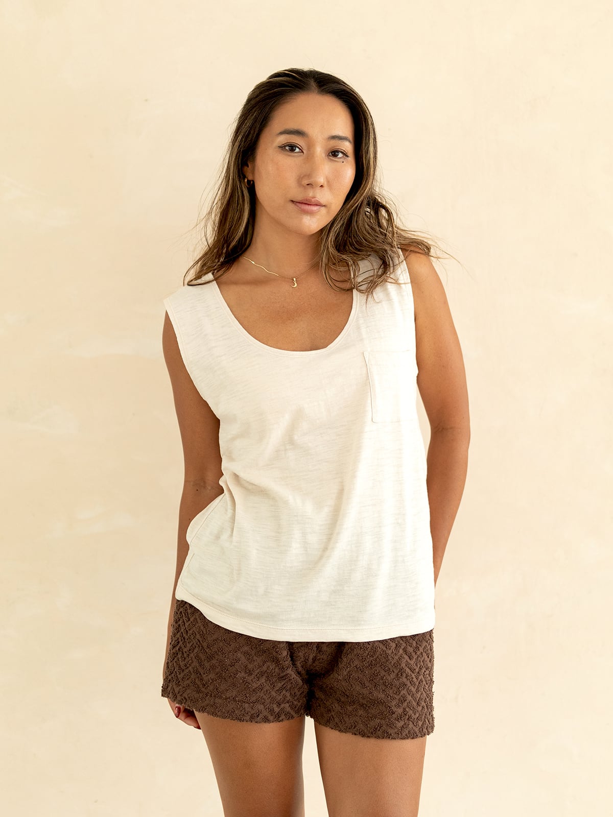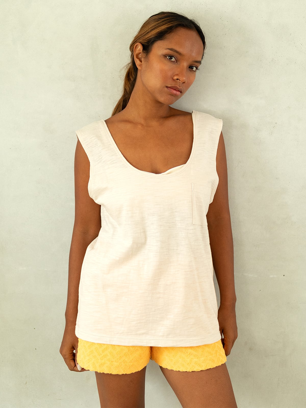 Uネックは開きすぎず、クローズしすぎず、シティでも海でも着やすいように。