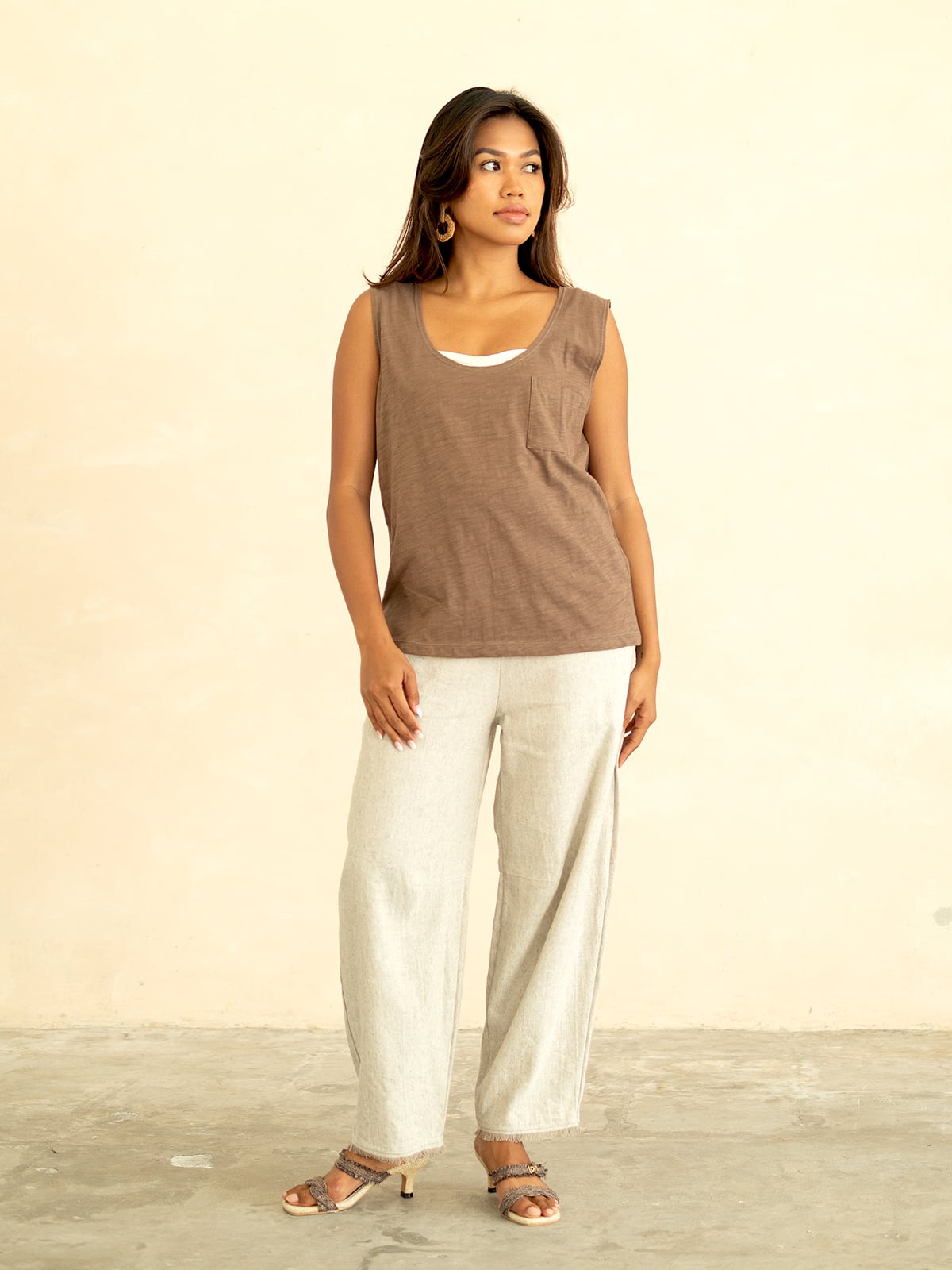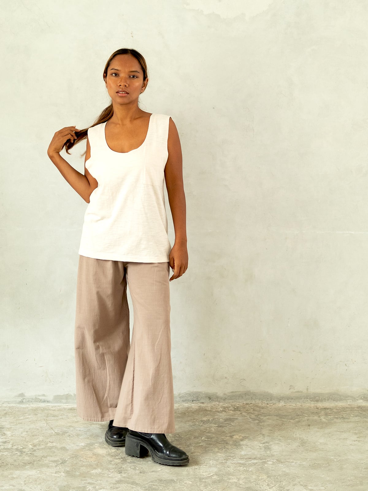 昔ベルギーで購入した、とあるブランドのシングレットが、シンプルだけど、素材もよく形も抜群だった。そんな一枚をデザインしたかった。