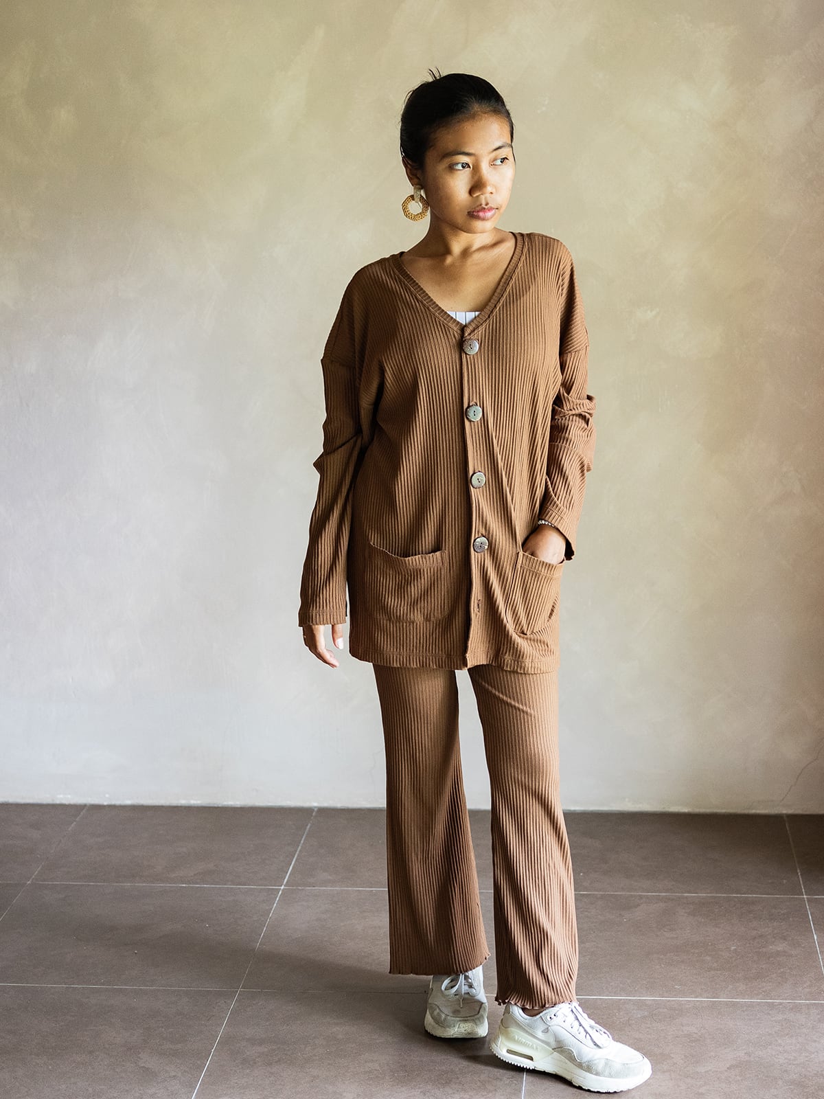 アウターとしても一枚でも着られるカーディガンをデザインしました。