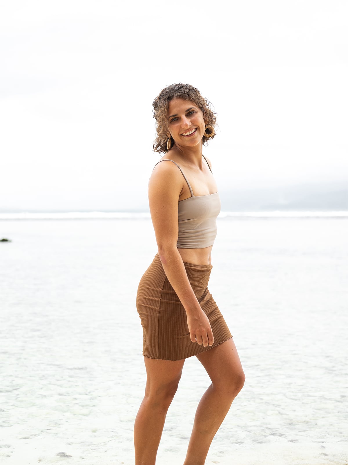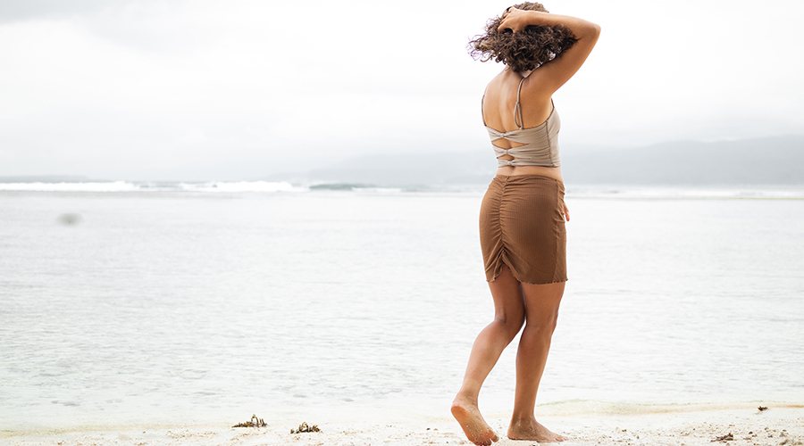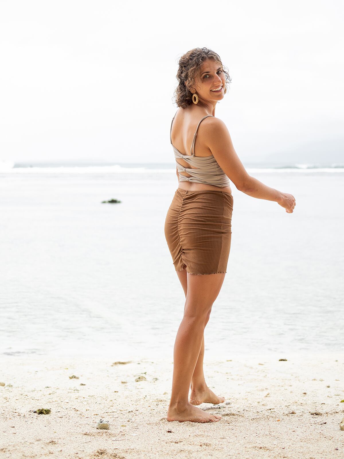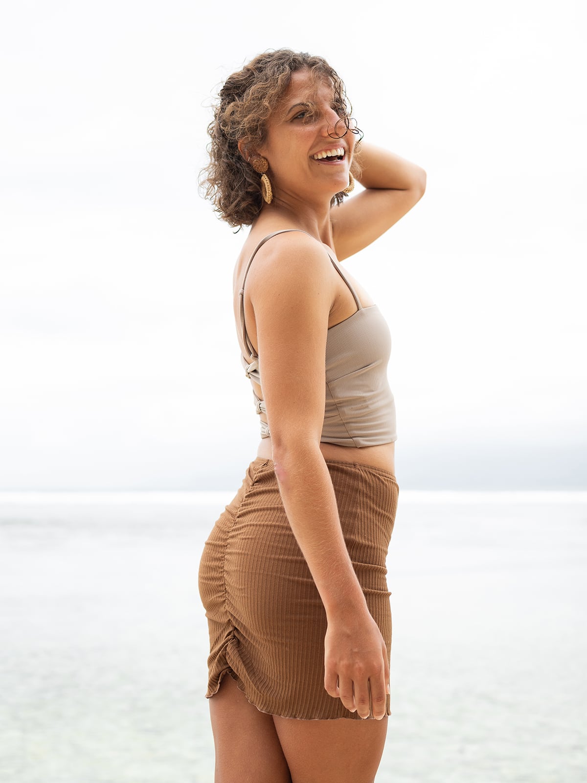そして、セクシーなヒップを演出するチーキーギャザーに、絶妙な丈感。