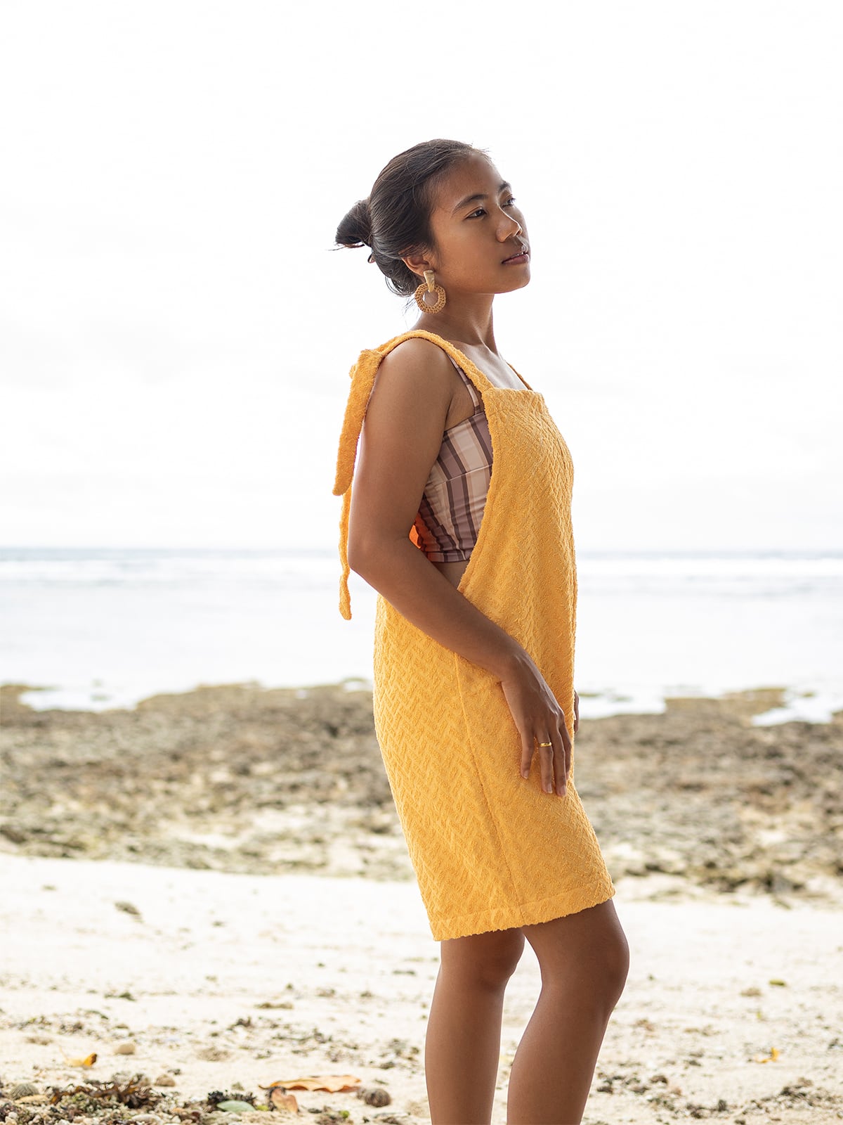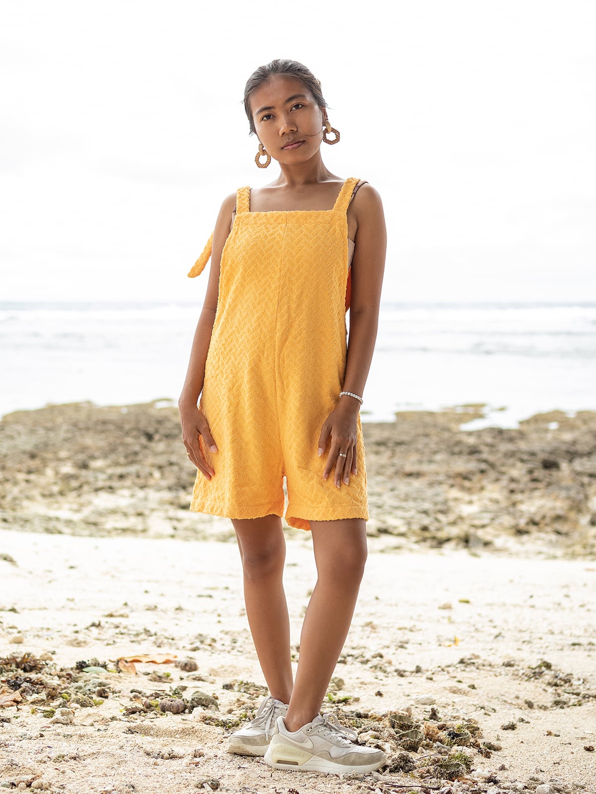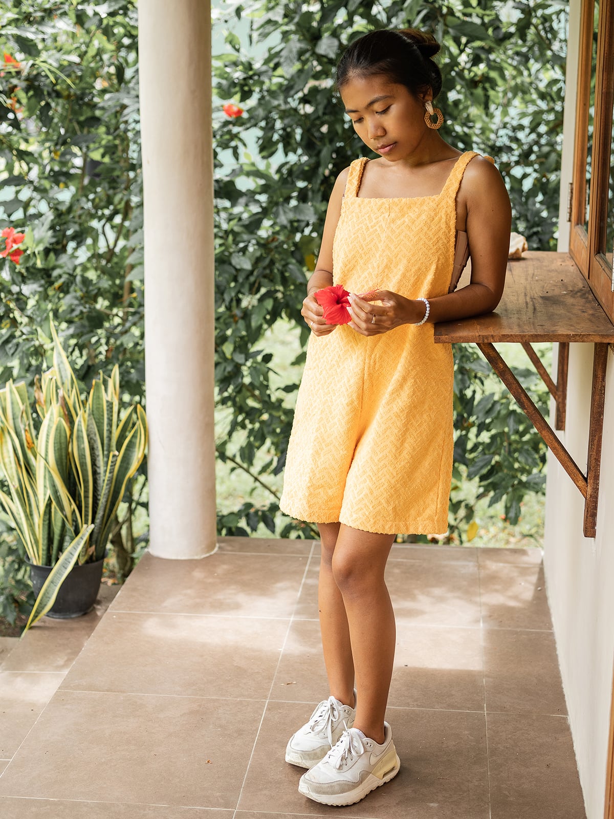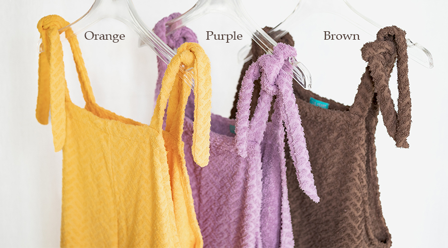 パイル生地で、ミニロンパースがあったら絶対可愛いと、デザインしました。