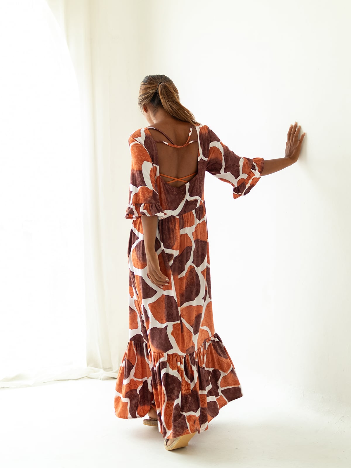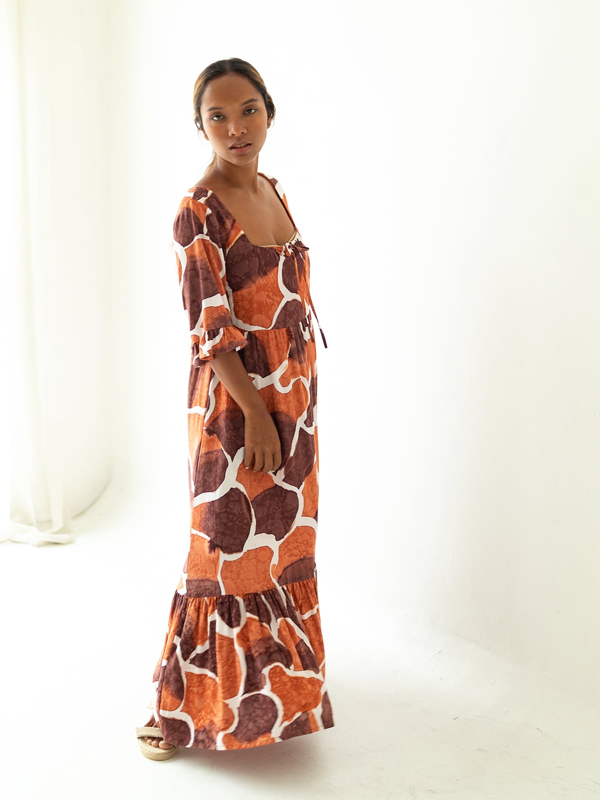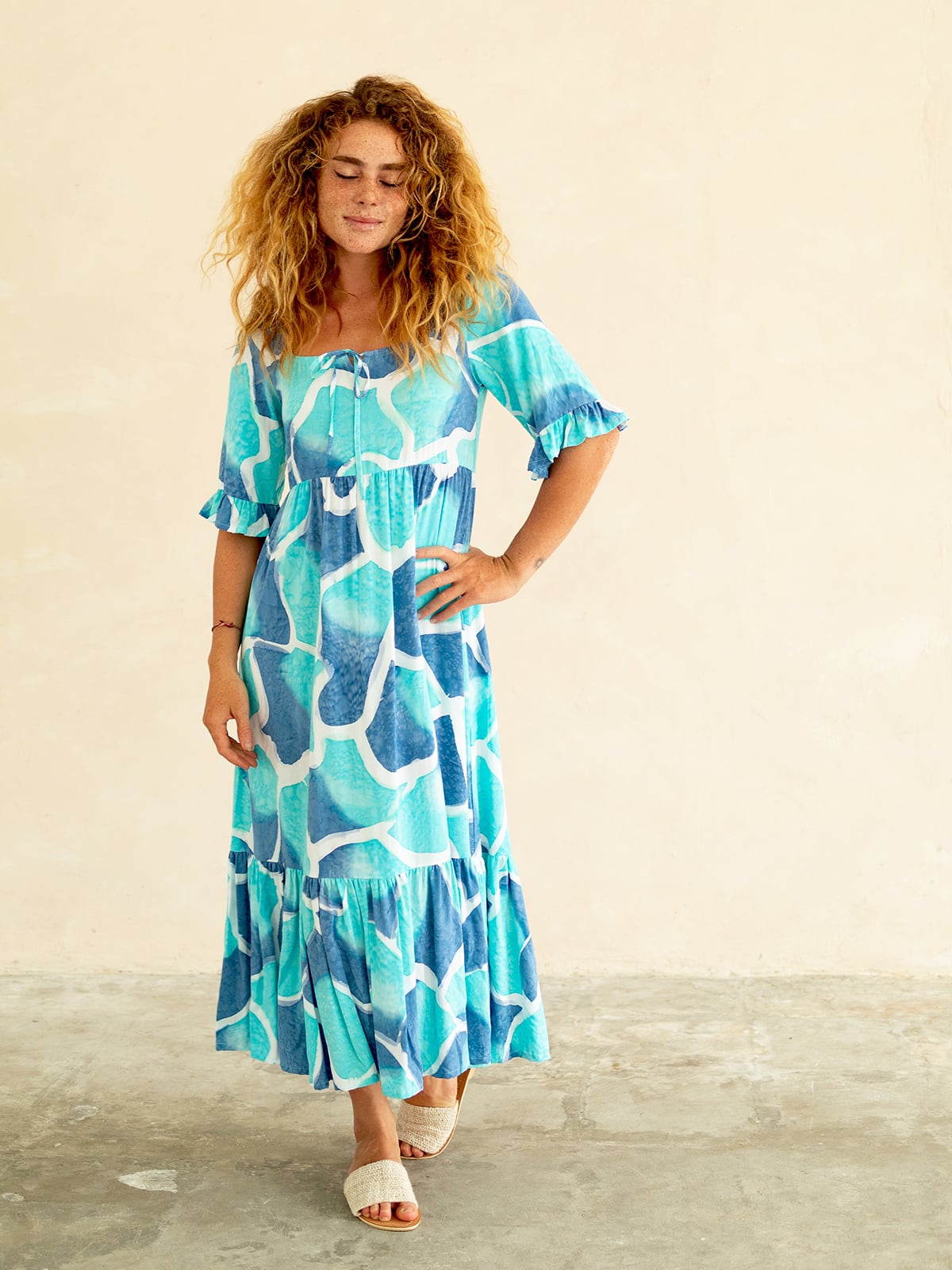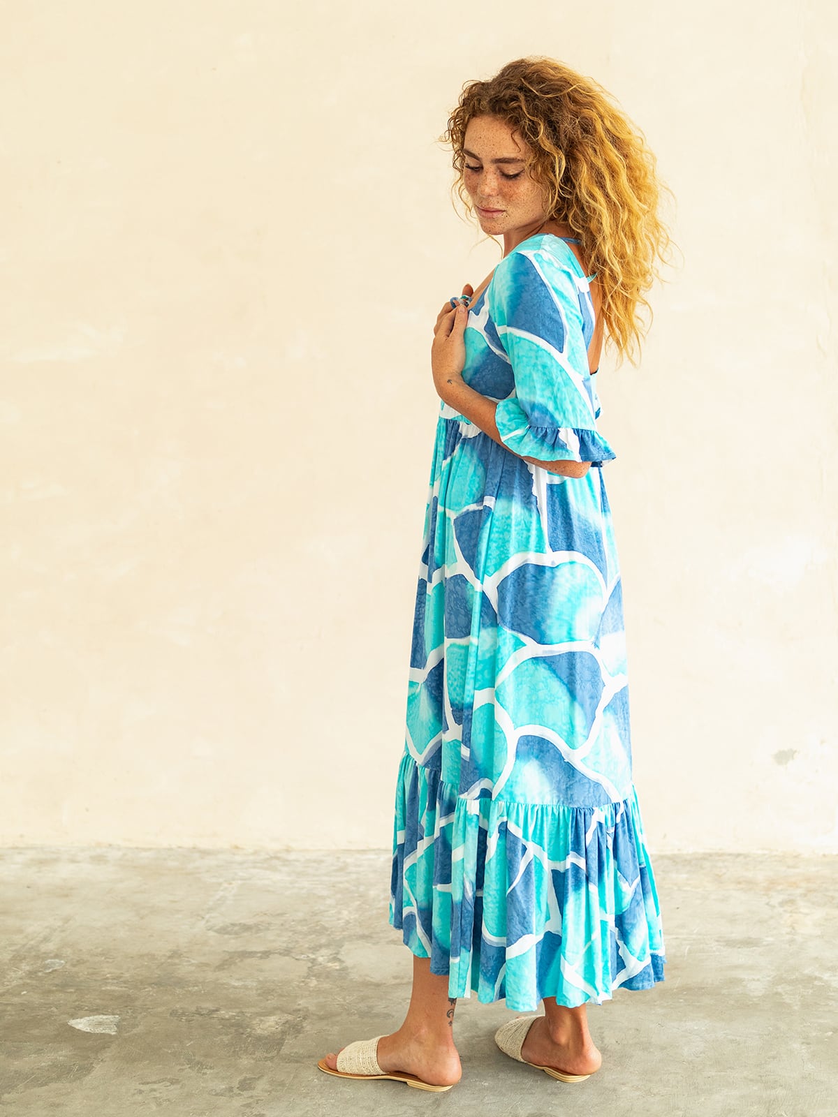 スクエアネック・ハーフスリーブ・ロングワンピース