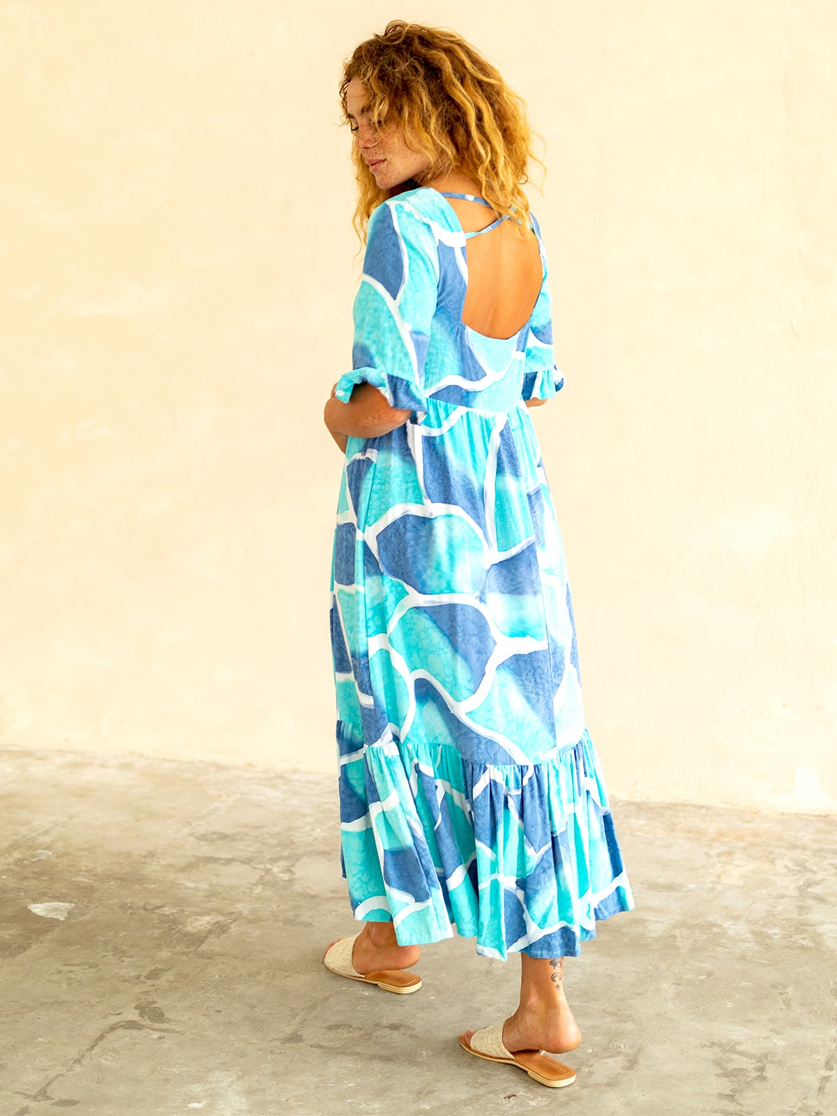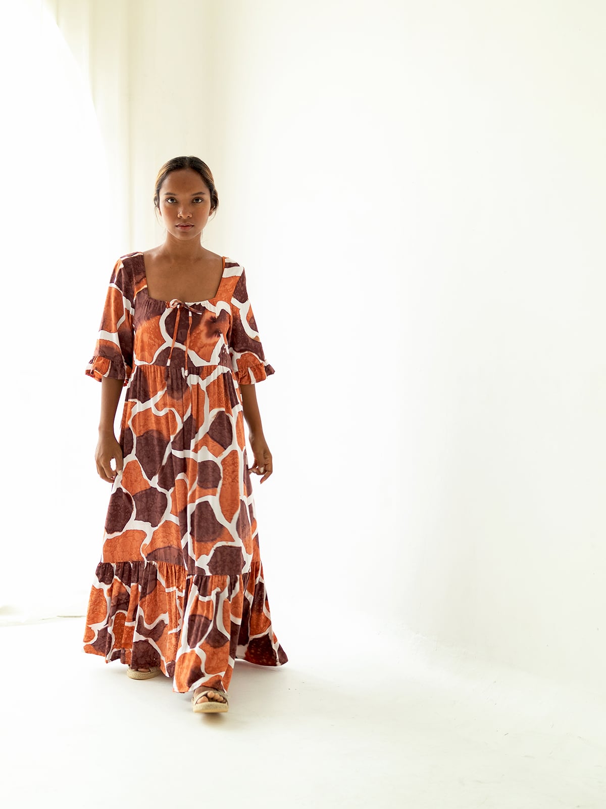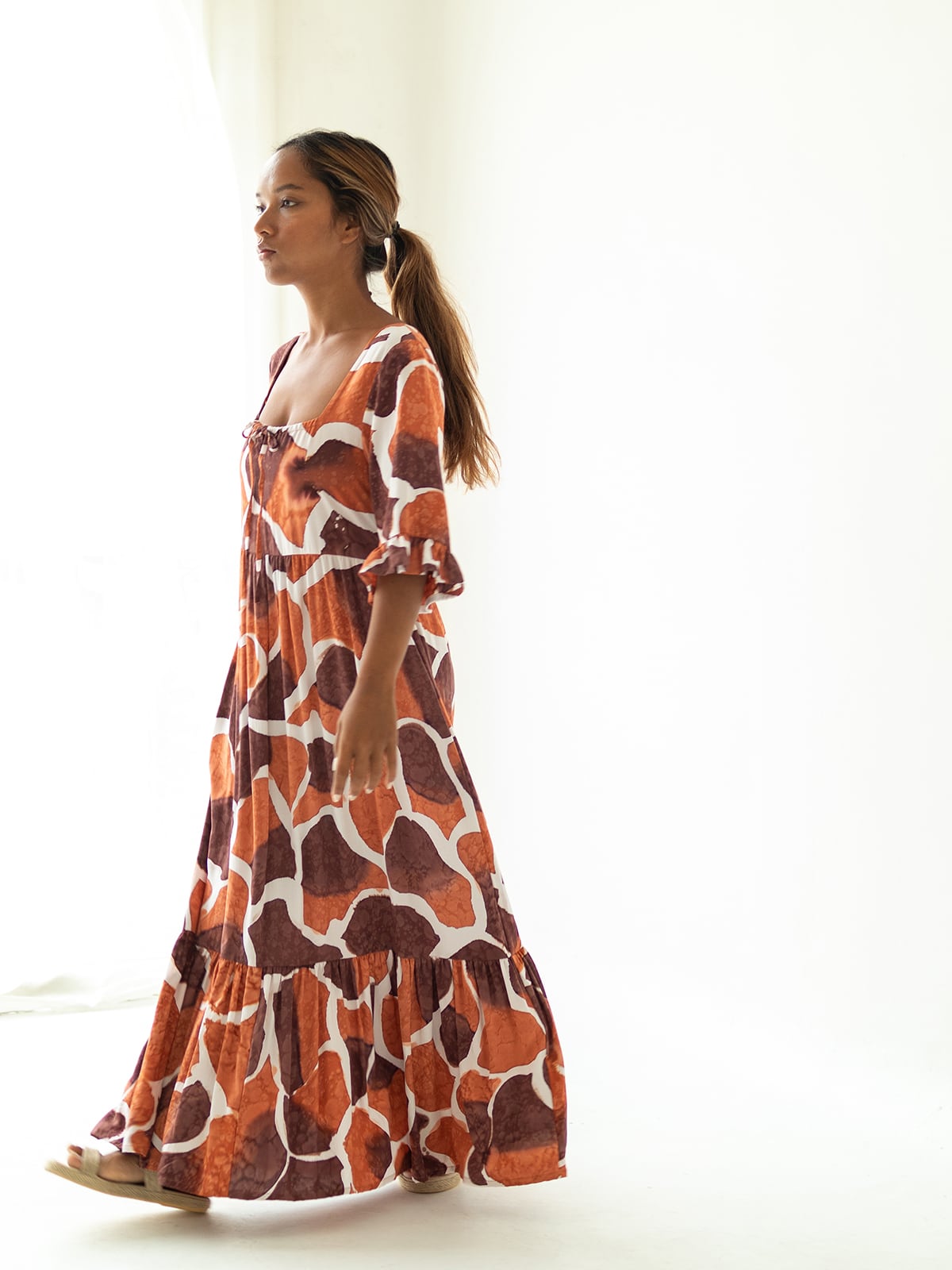 スクエアネック・ハーフスリーブ・ロングワンピース