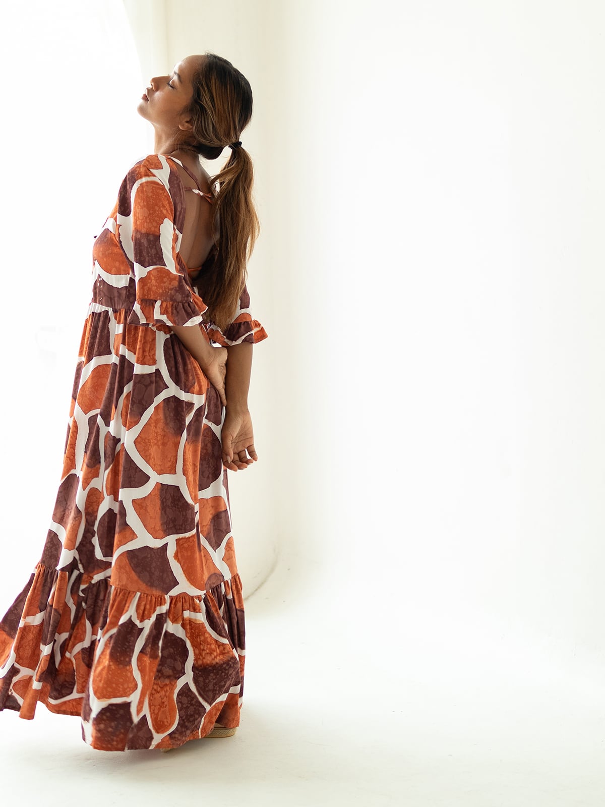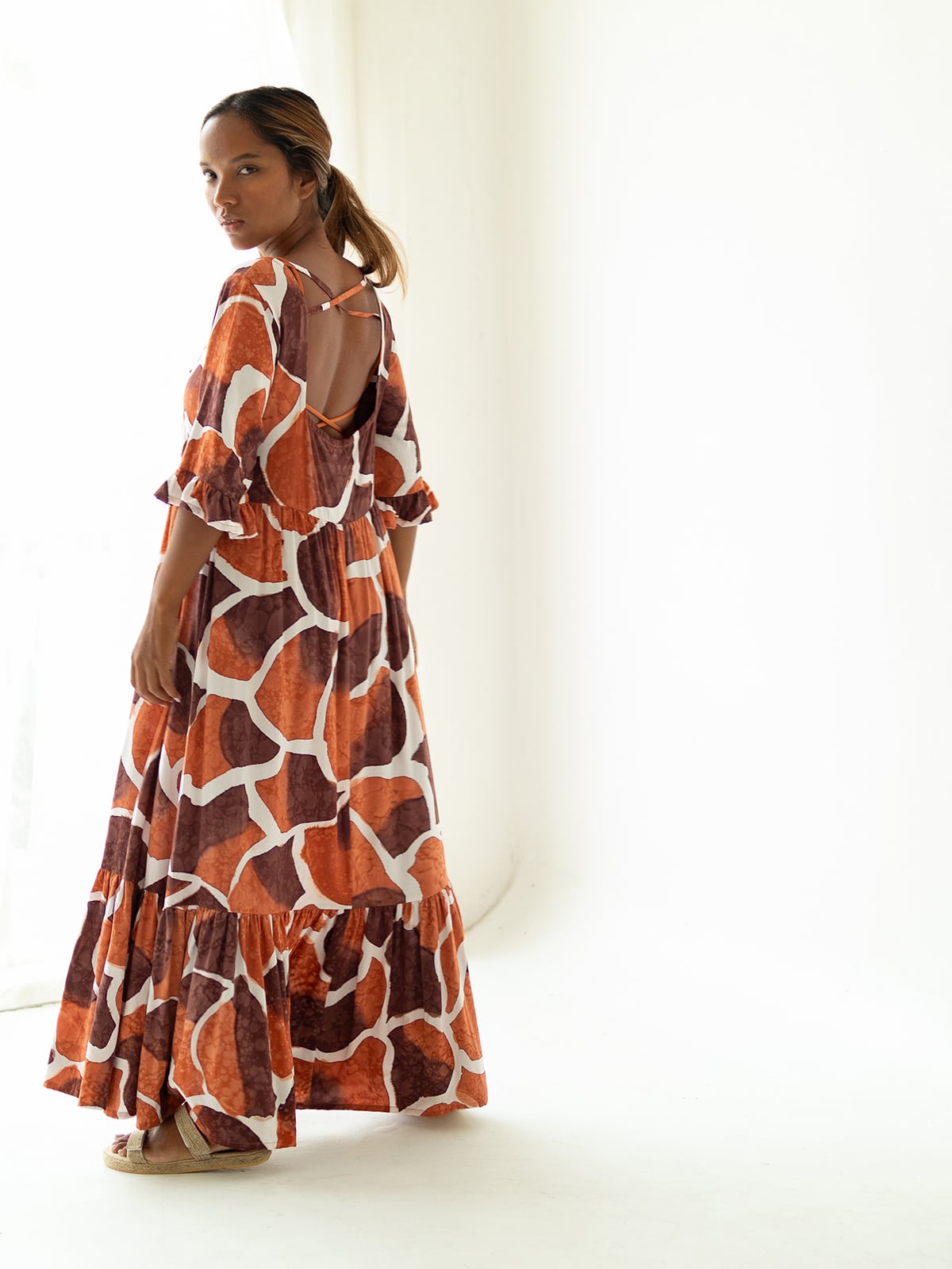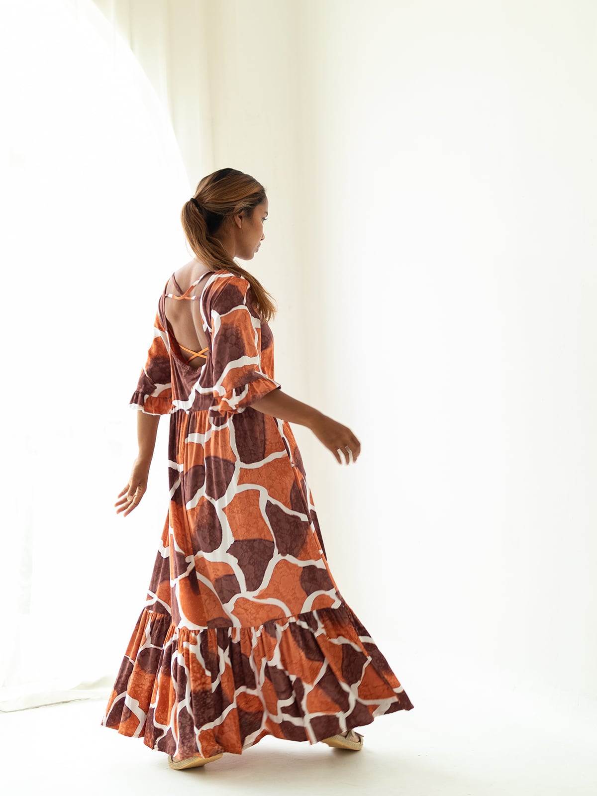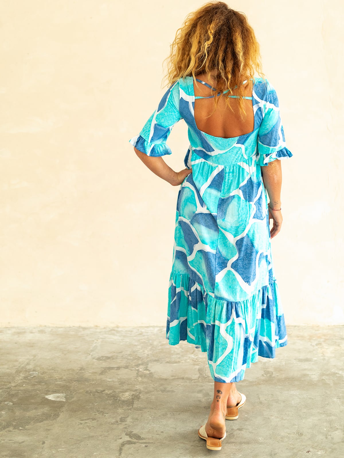 スクエアネック・ハーフスリーブ・ロングワンピース
