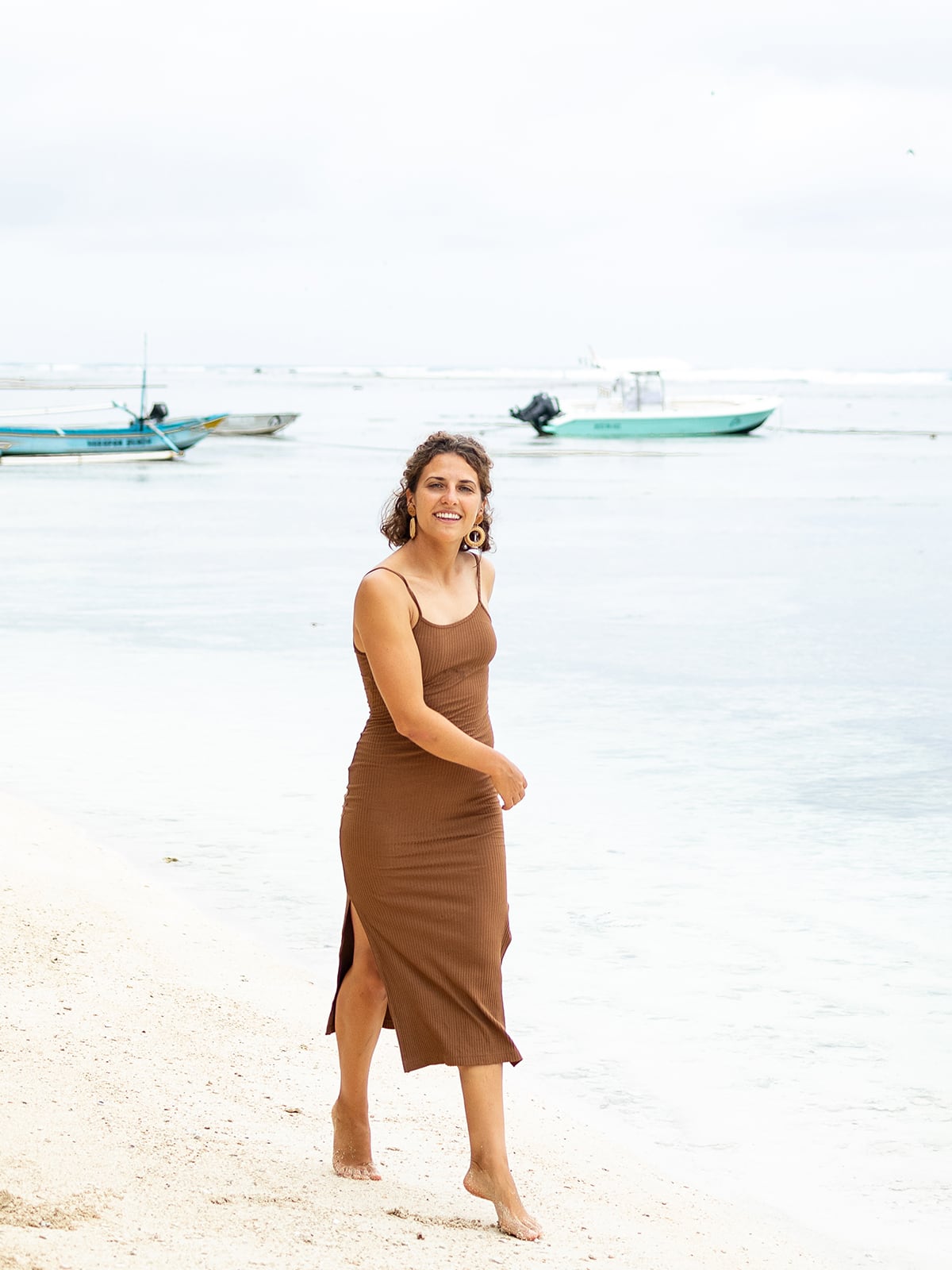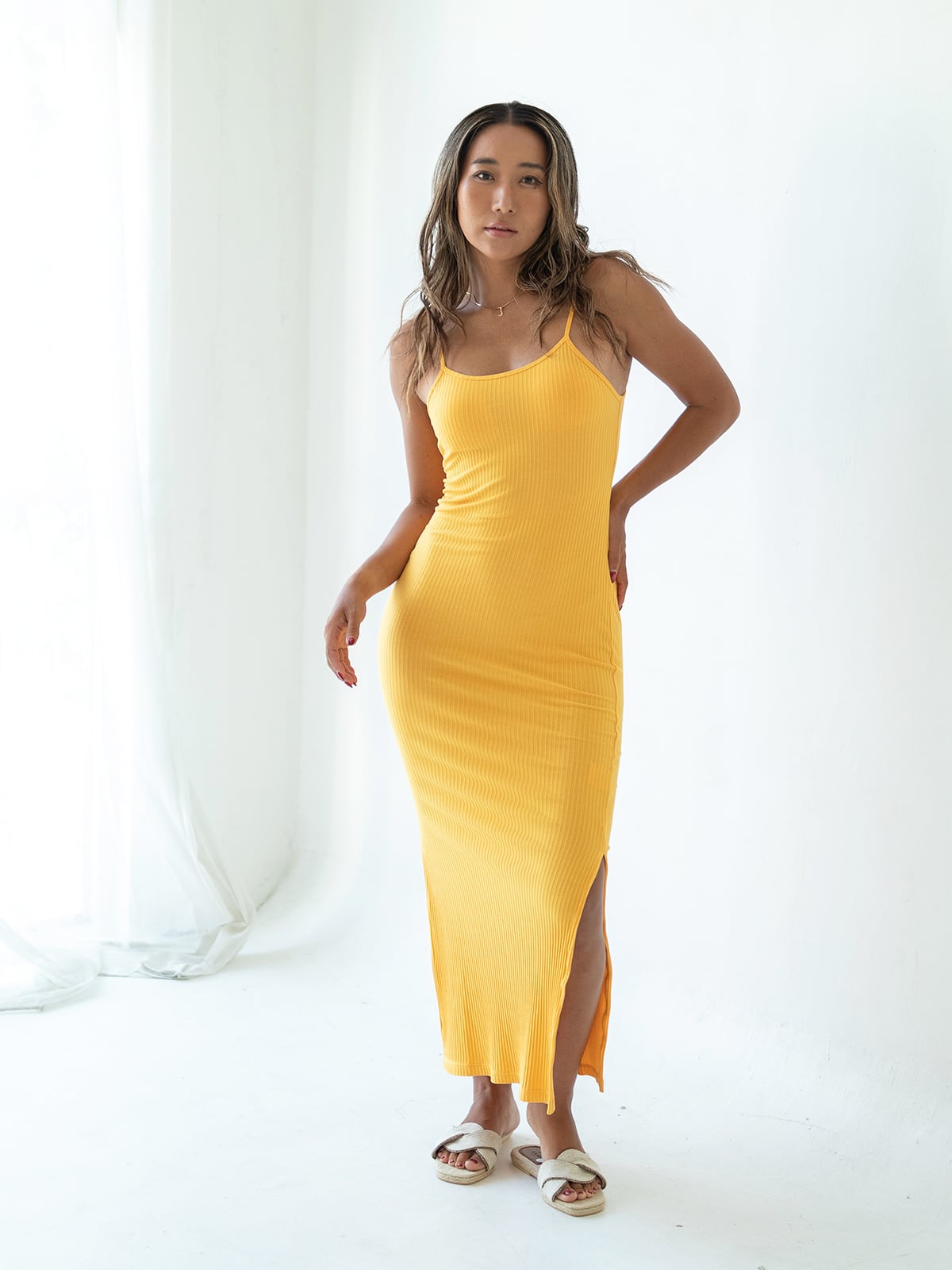 鎖骨や肩周りが綺麗に見える、フィットワンピースをリブでデザインしました。