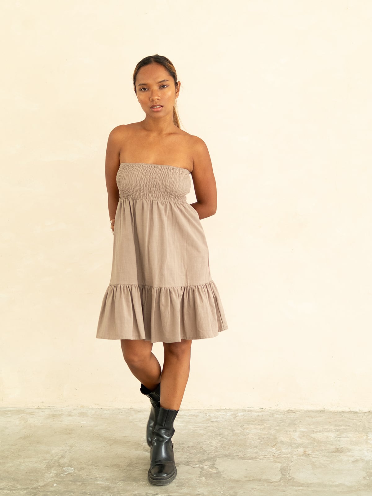 ゴムウェスト・ミディスカート/ベアトップ・ミニワンピース