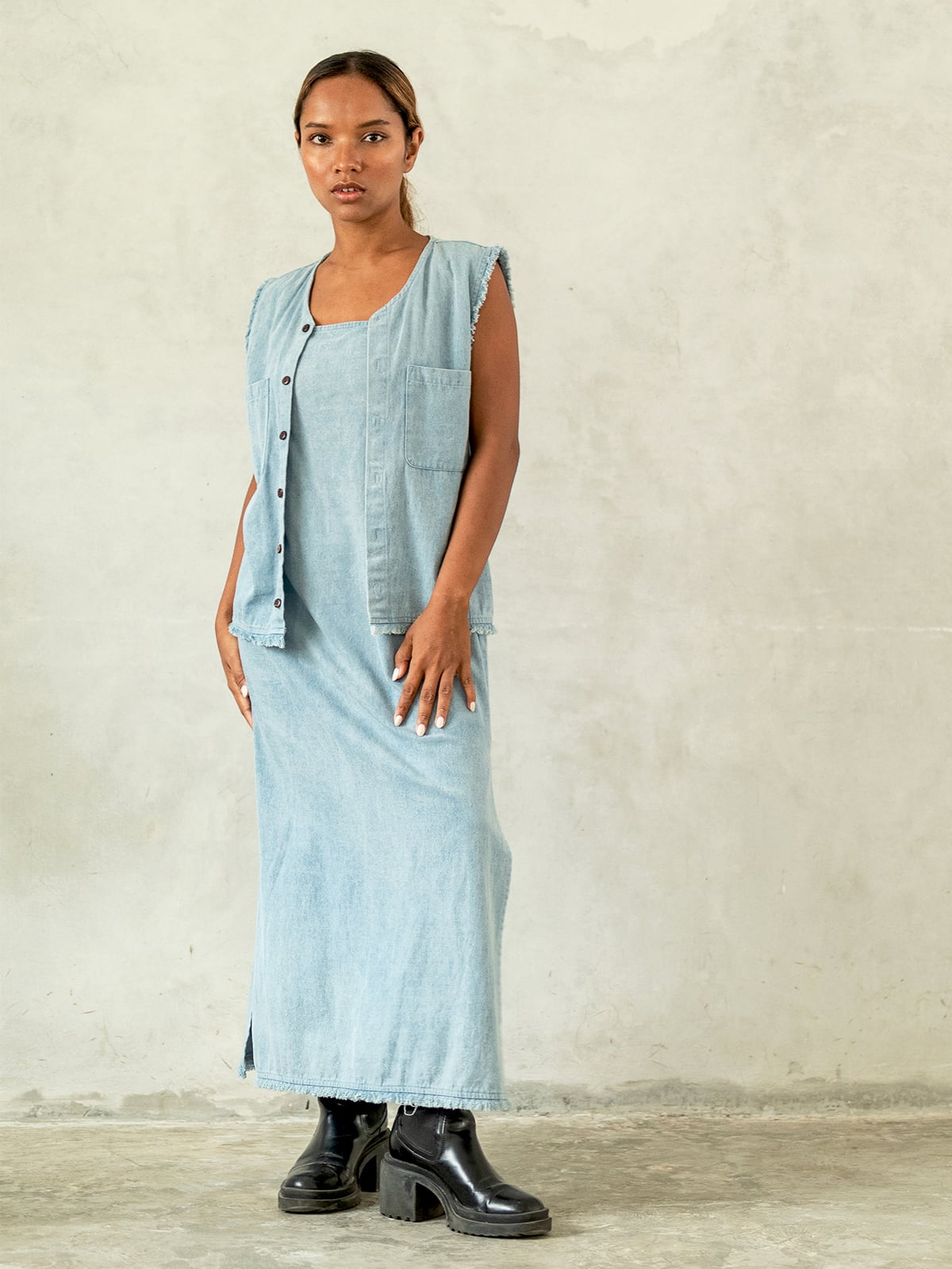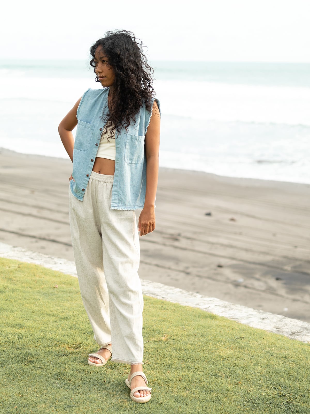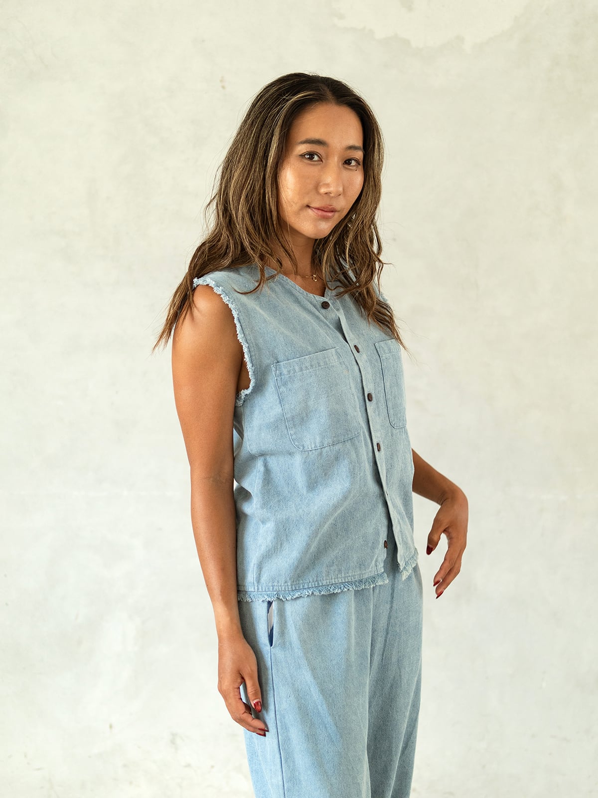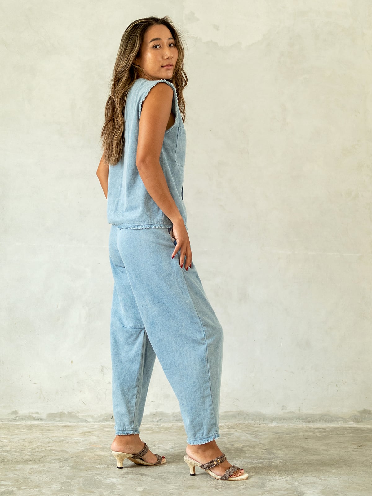 ★デニム、リネン、コットンと3種類の生地にて展開のモデル。