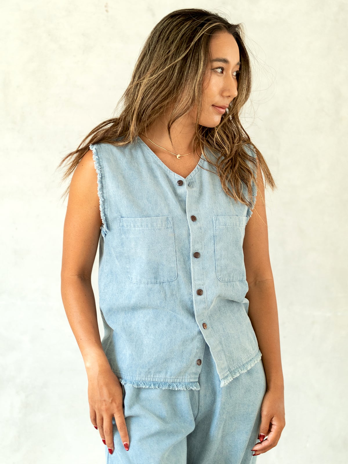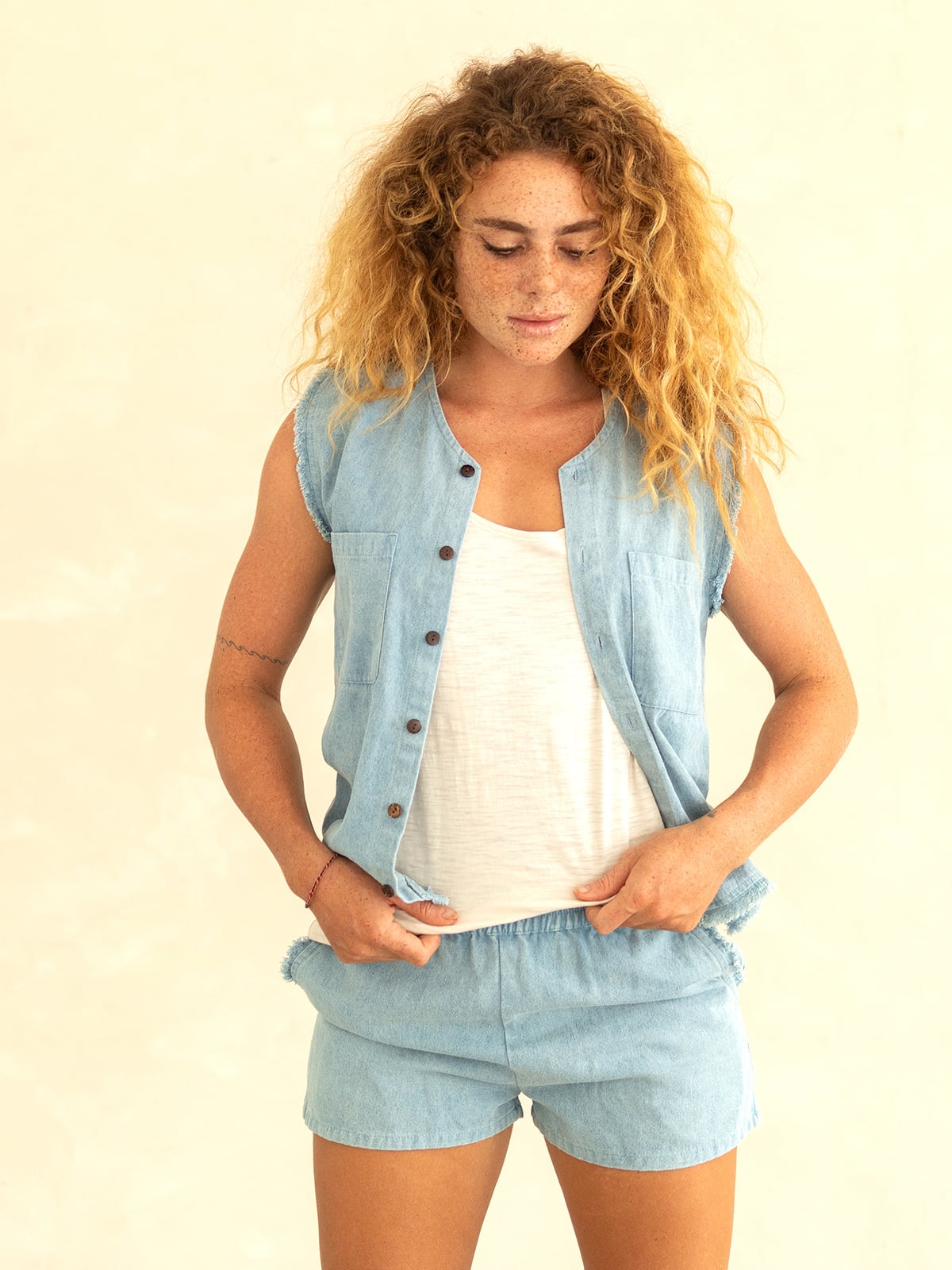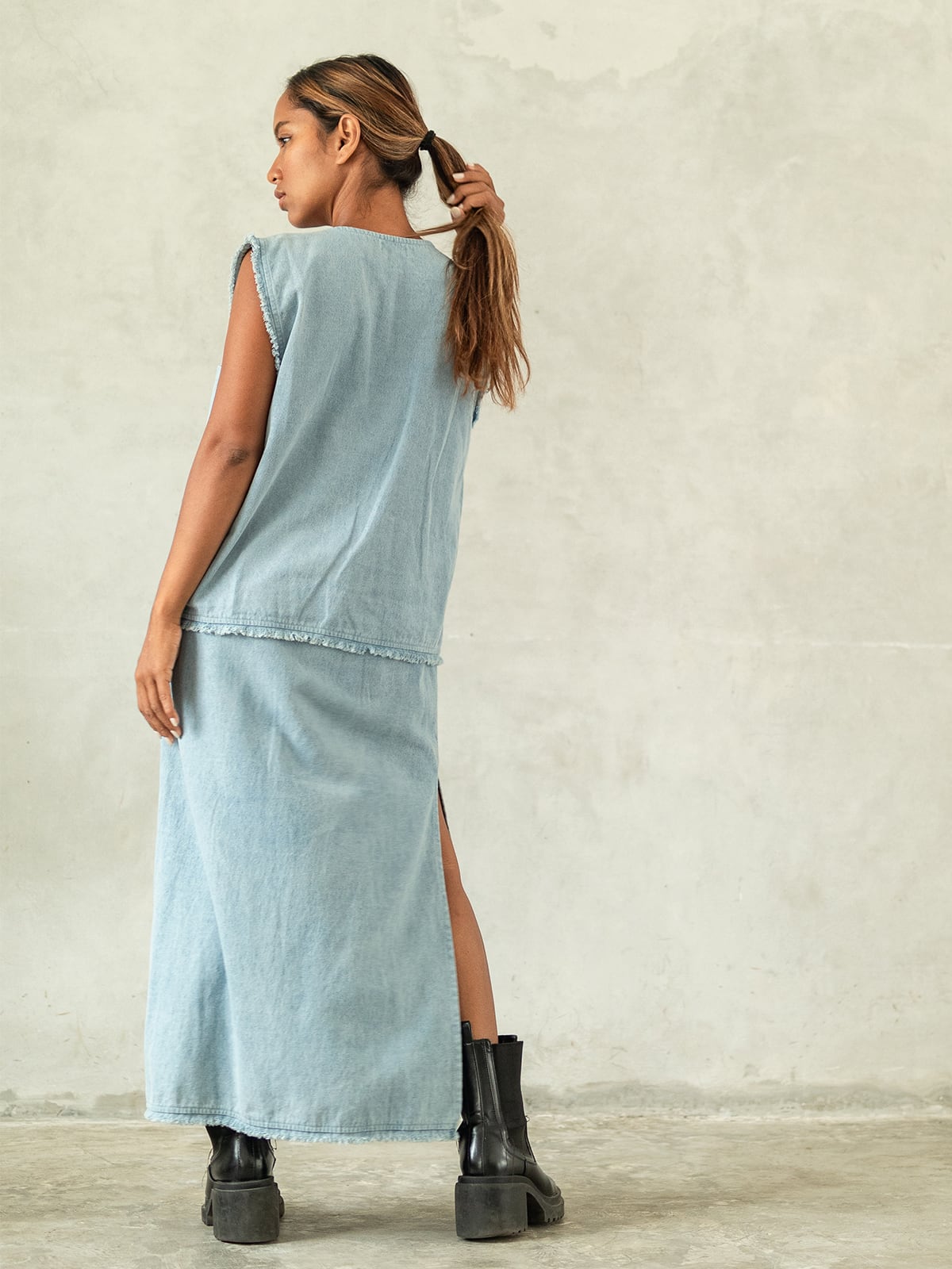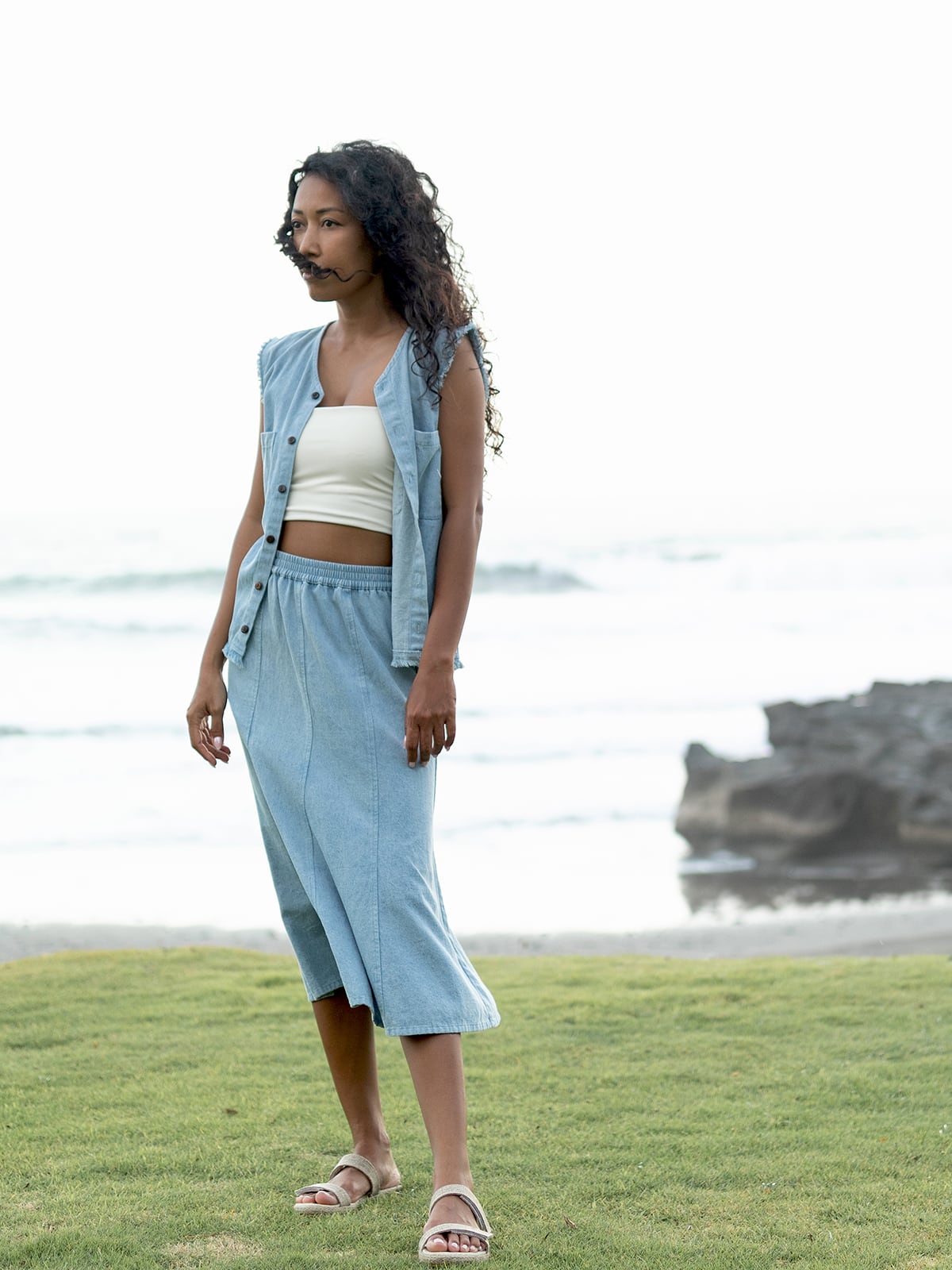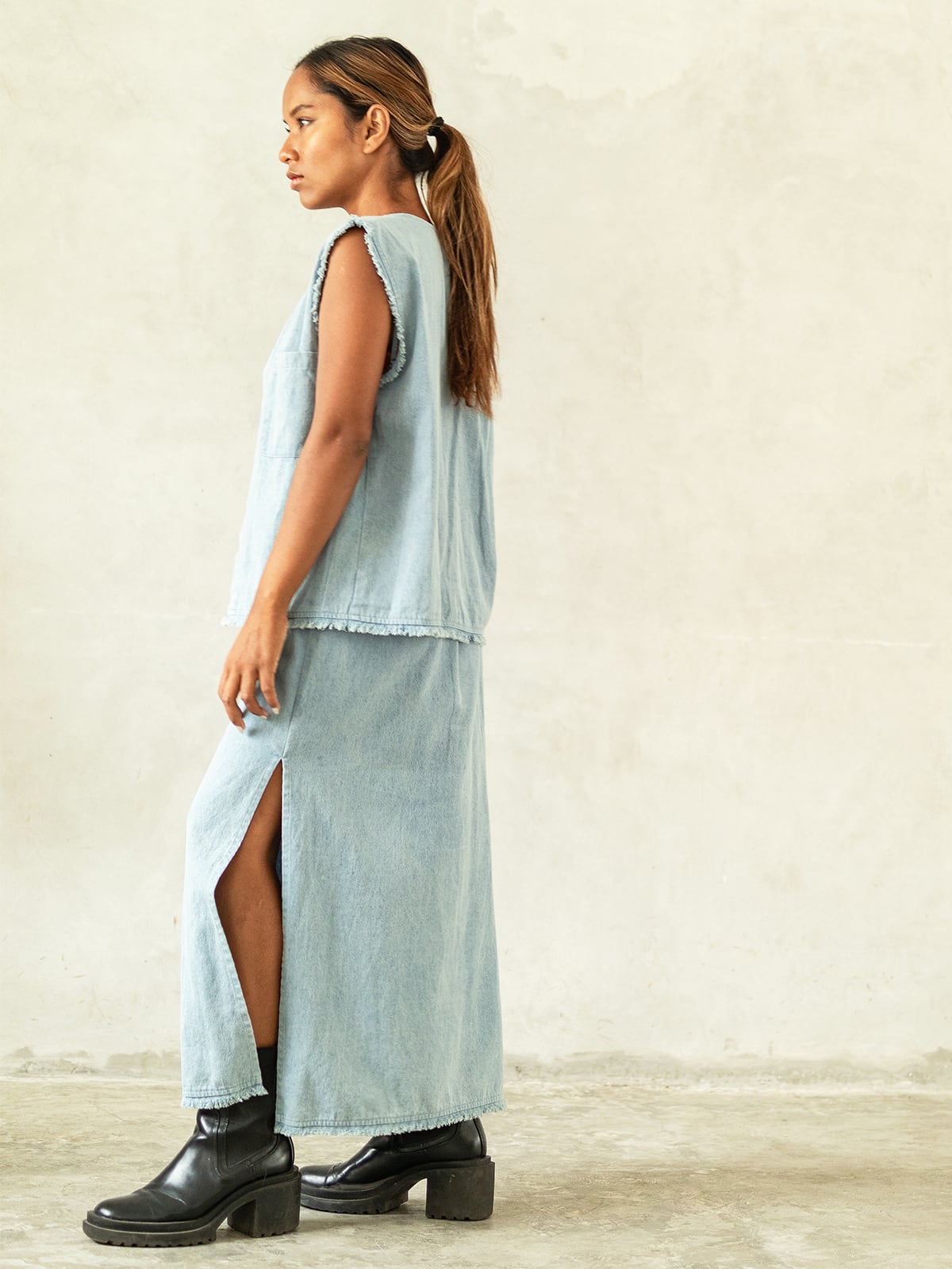 ★デニム、リネン、コットンと3種類の生地にて展開のモデル。