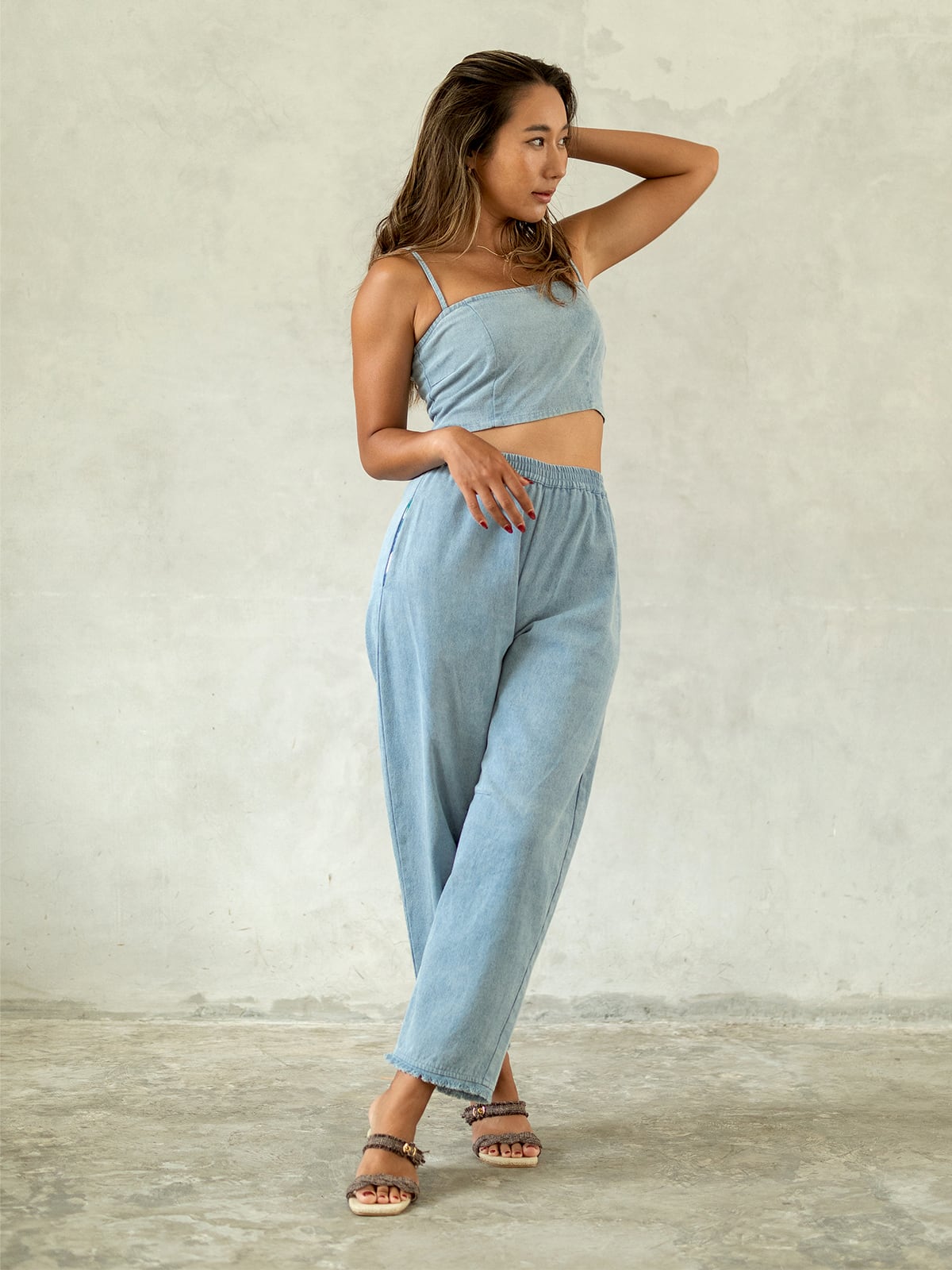 ★デニム、リネン、コットンと3種類の生地にて展開のモデル。