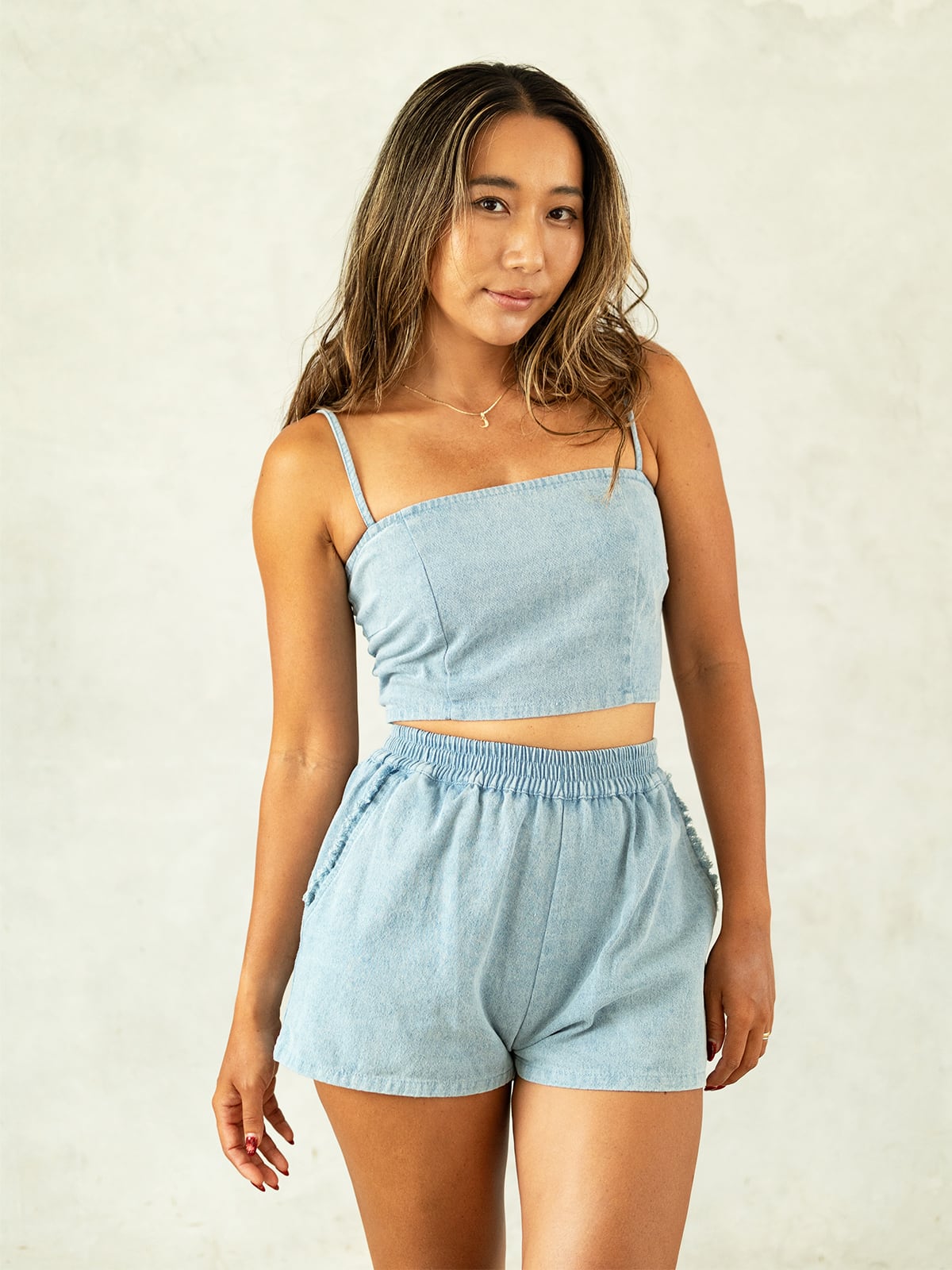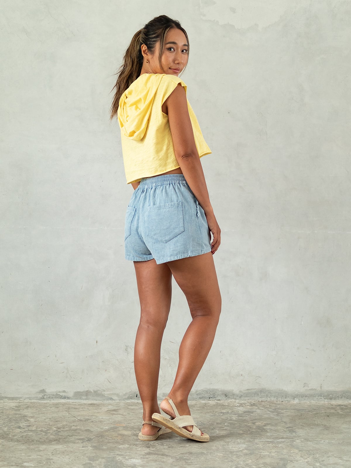 ゴムウェスト・フリンジポケット・ショートパンツ