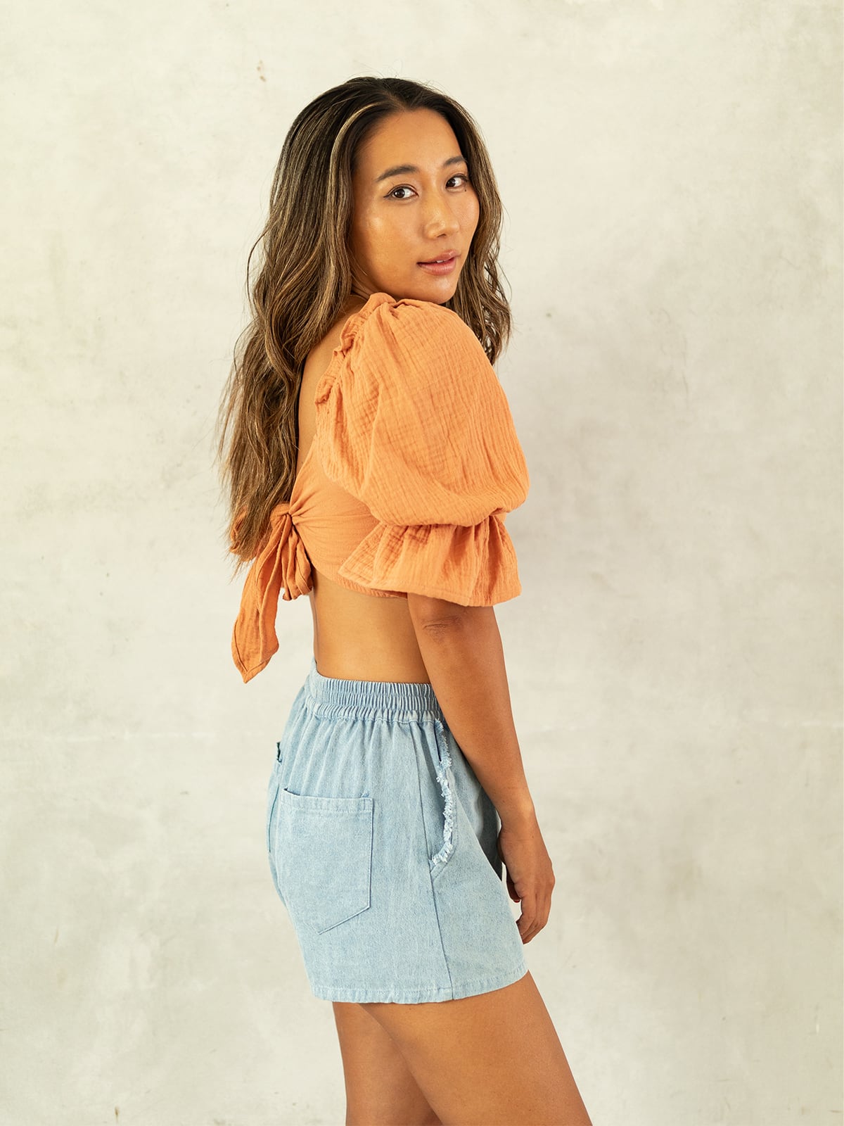 ★デニム、リネン、コットンと3種類の生地にて展開のモデル