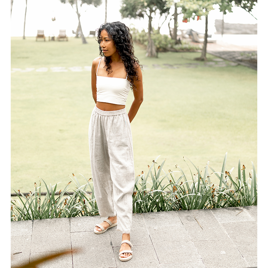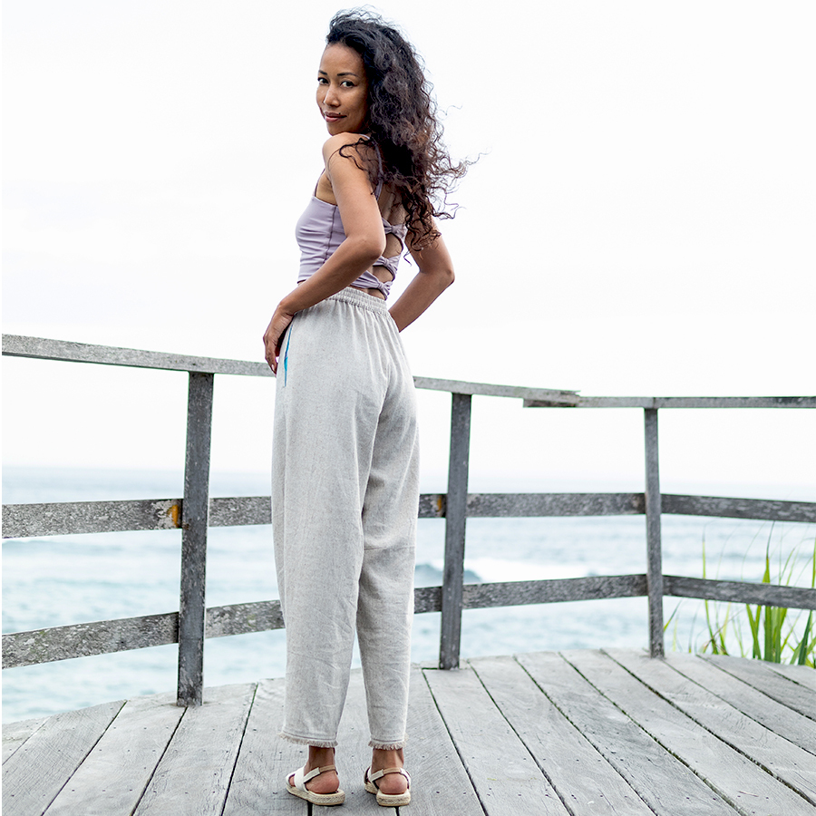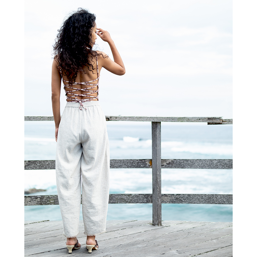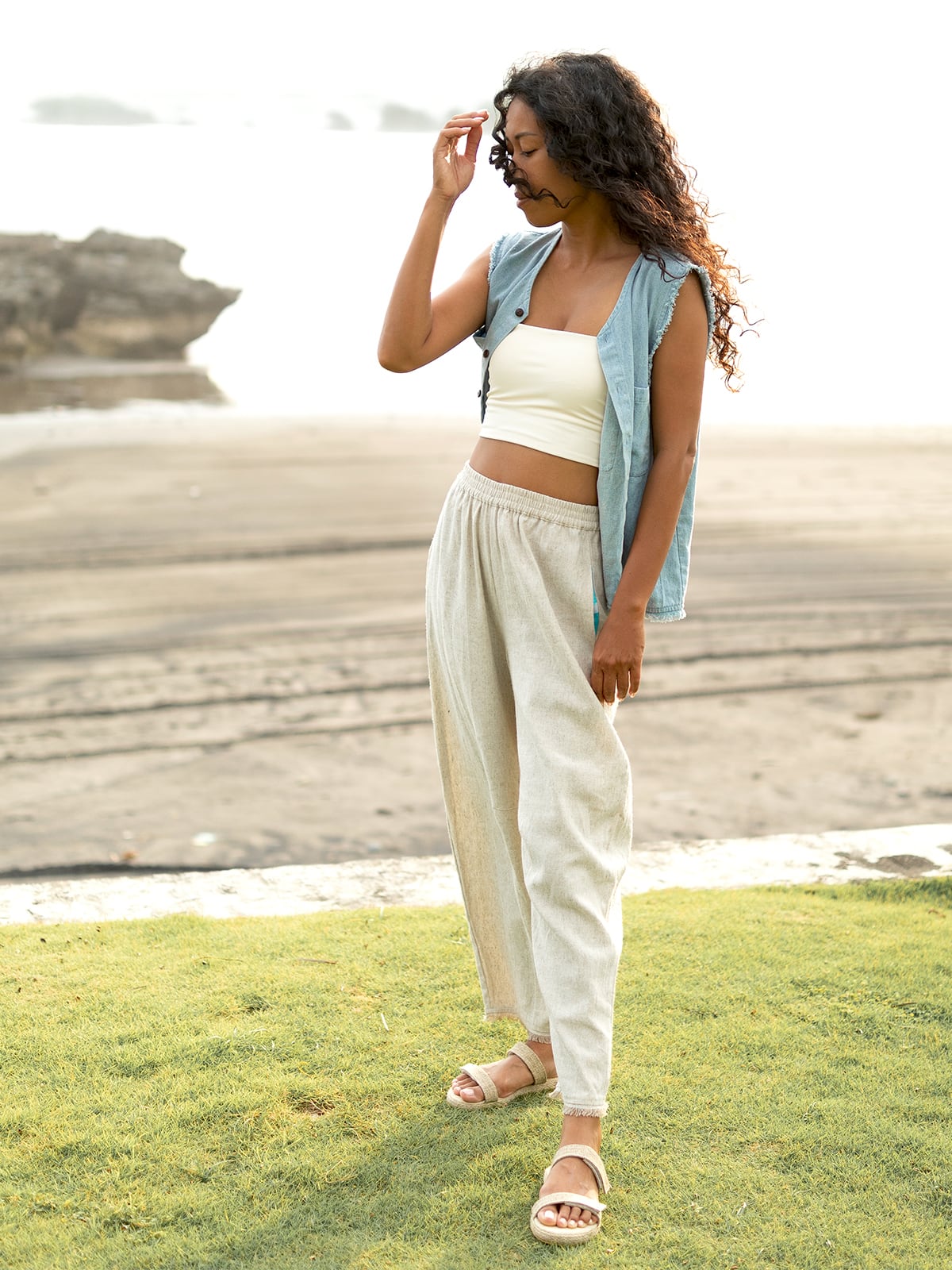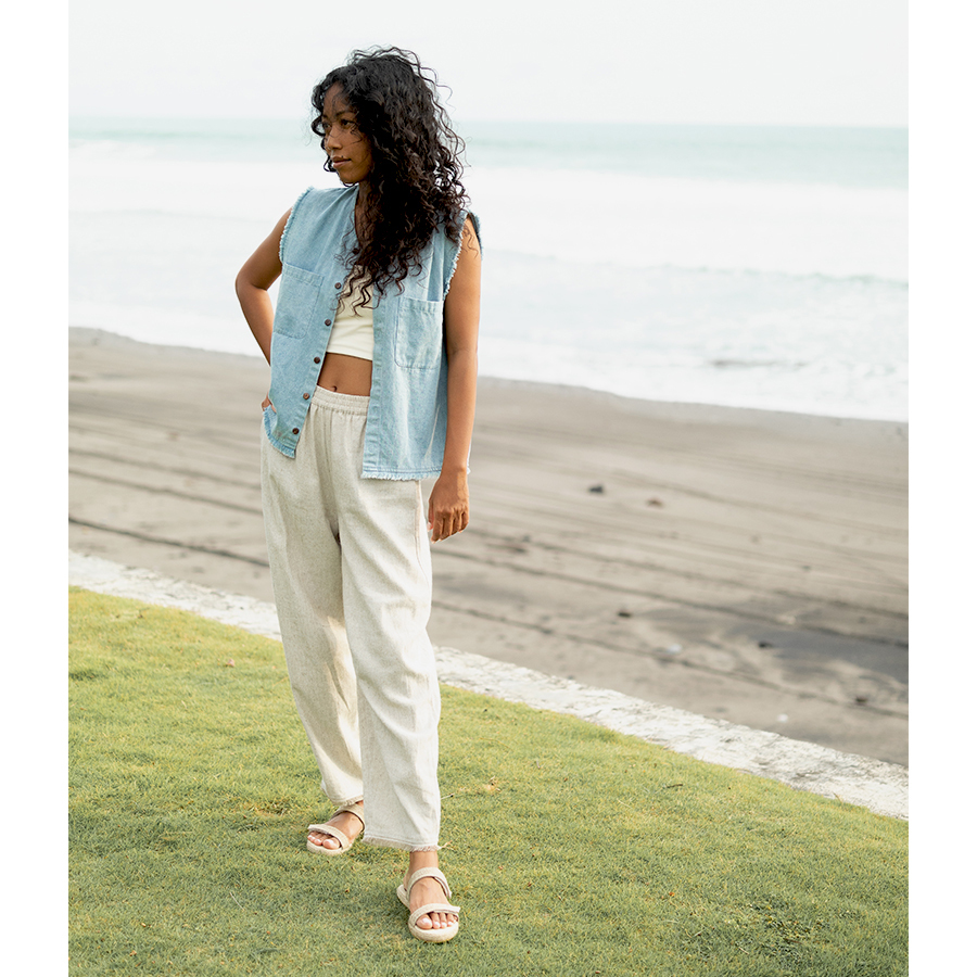 ★デニム、リネン、コットンと3種類の生地にて展開のモデル。