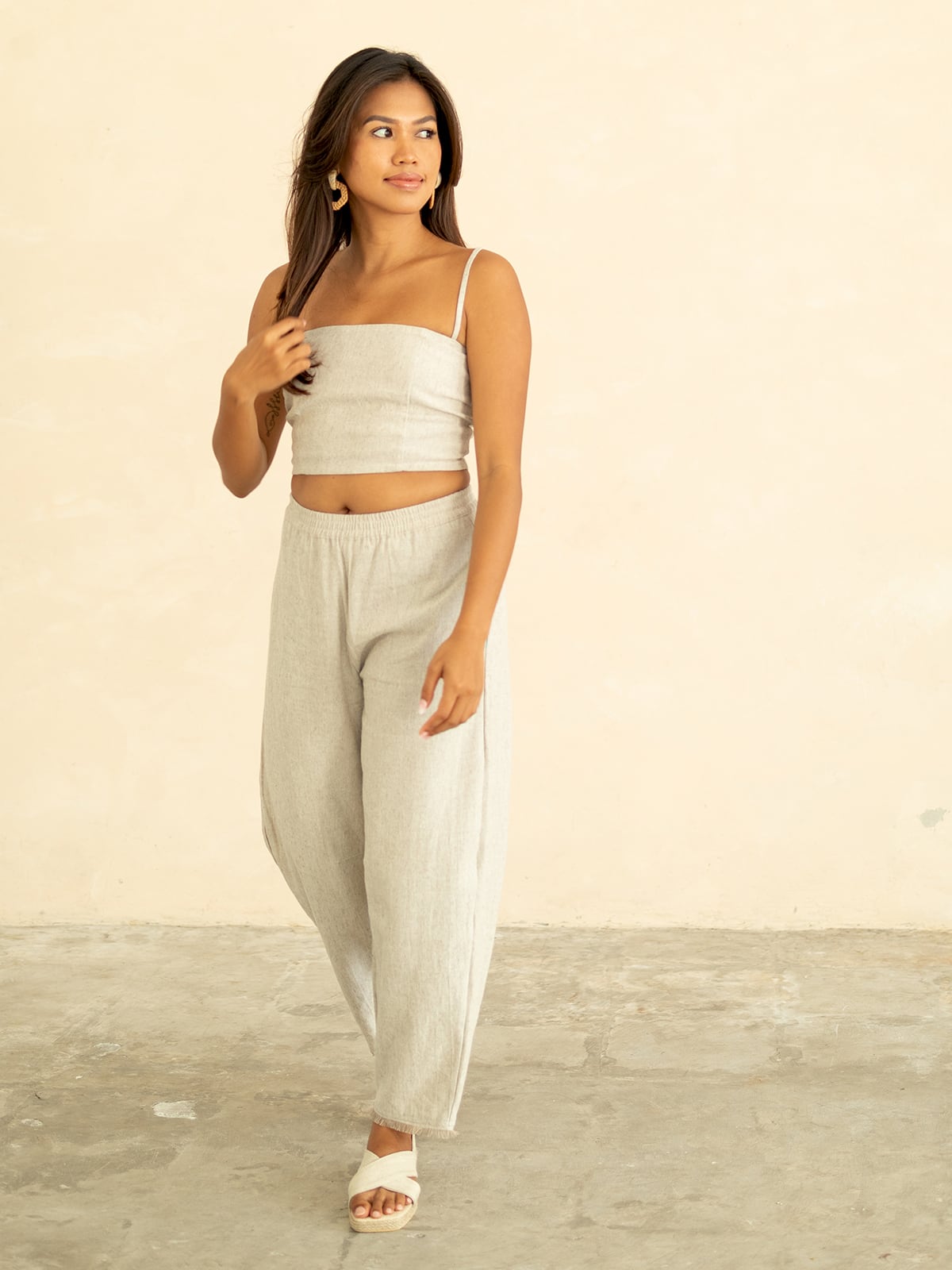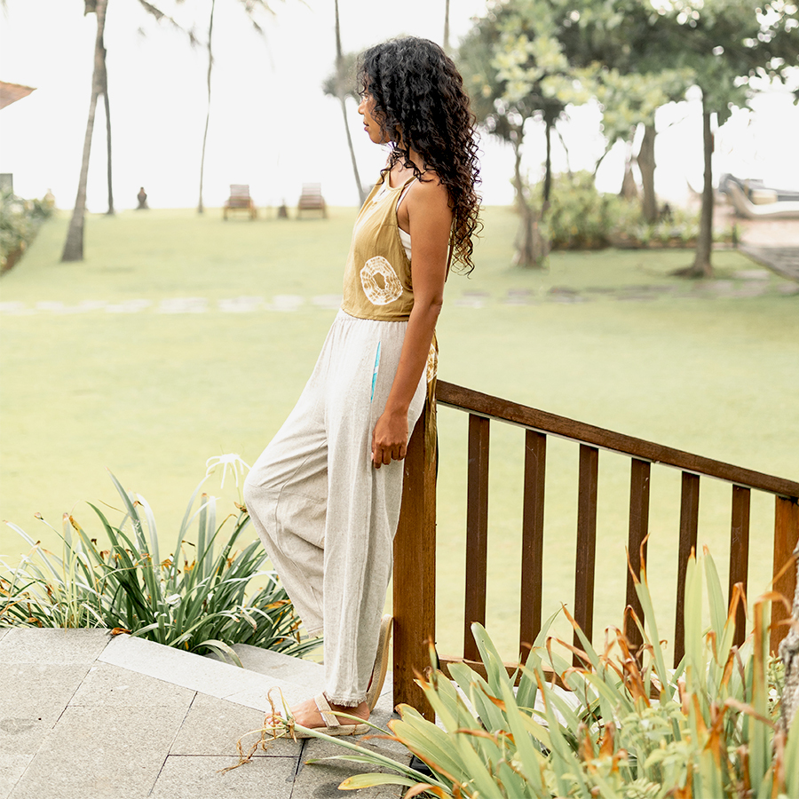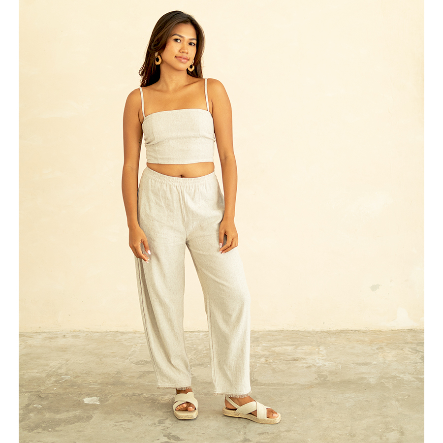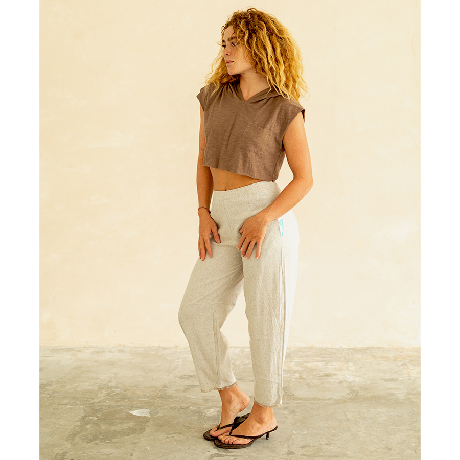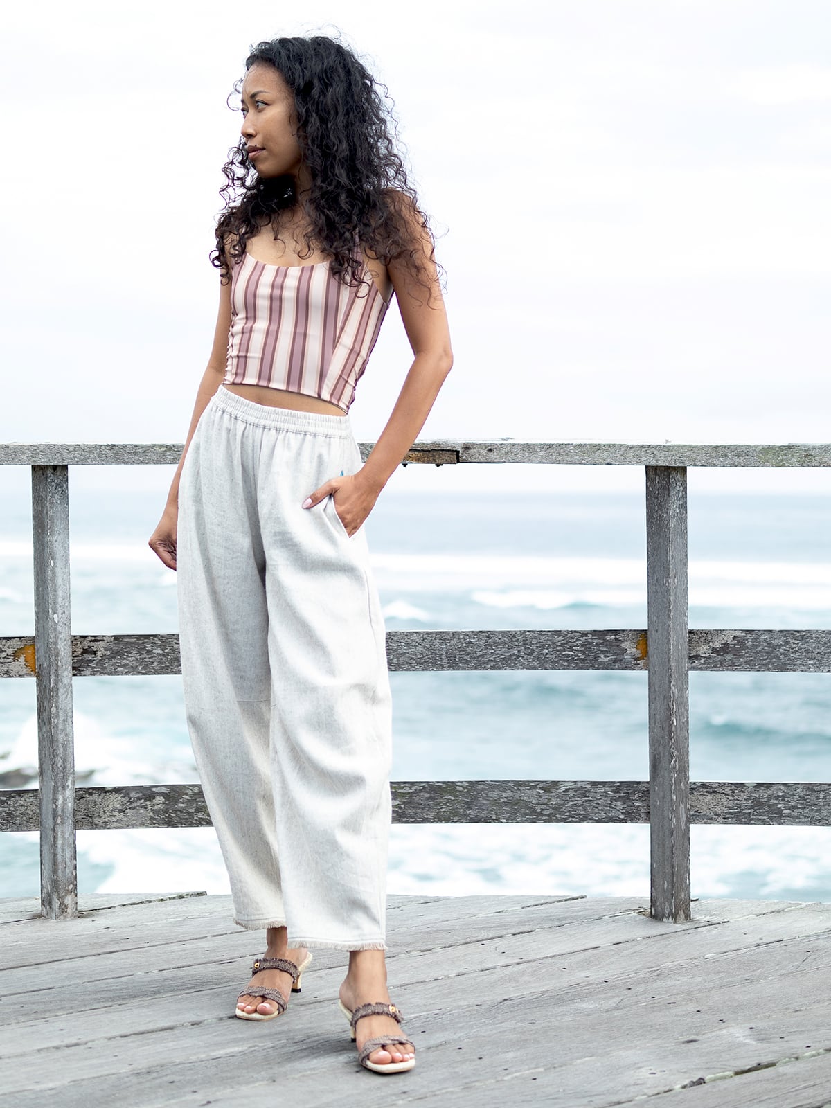 ★デニム、リネン、コットンと3種類の生地にて展開のモデル。