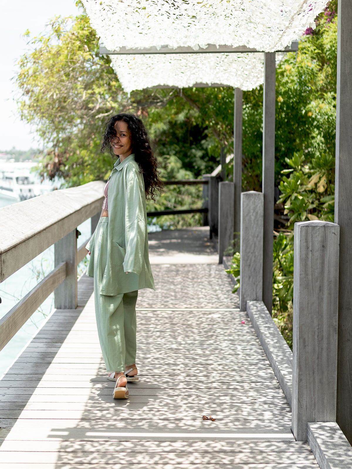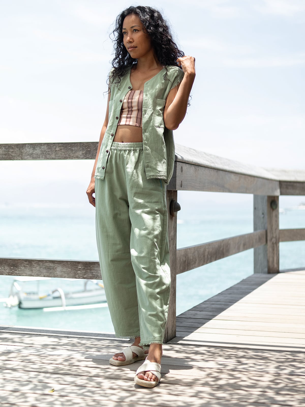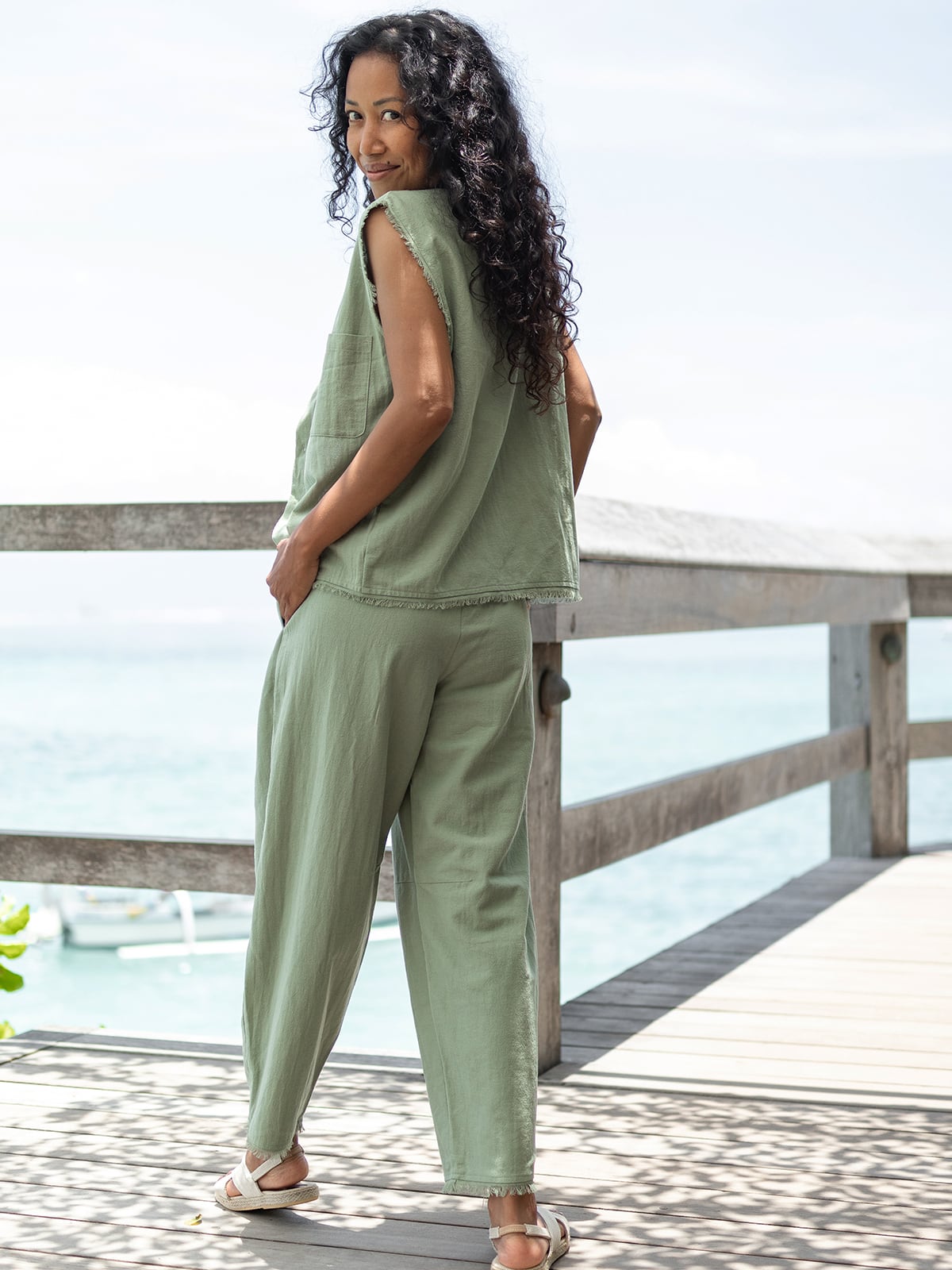 ★デニム、リネン、コットンと3種類の生地にて展開のモデル。