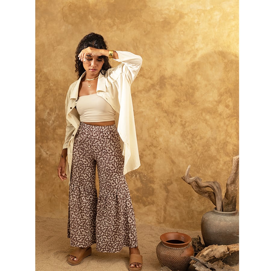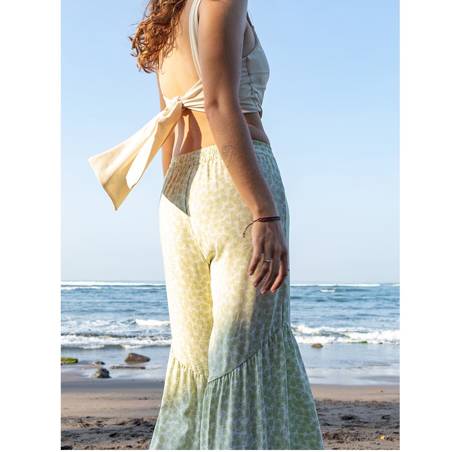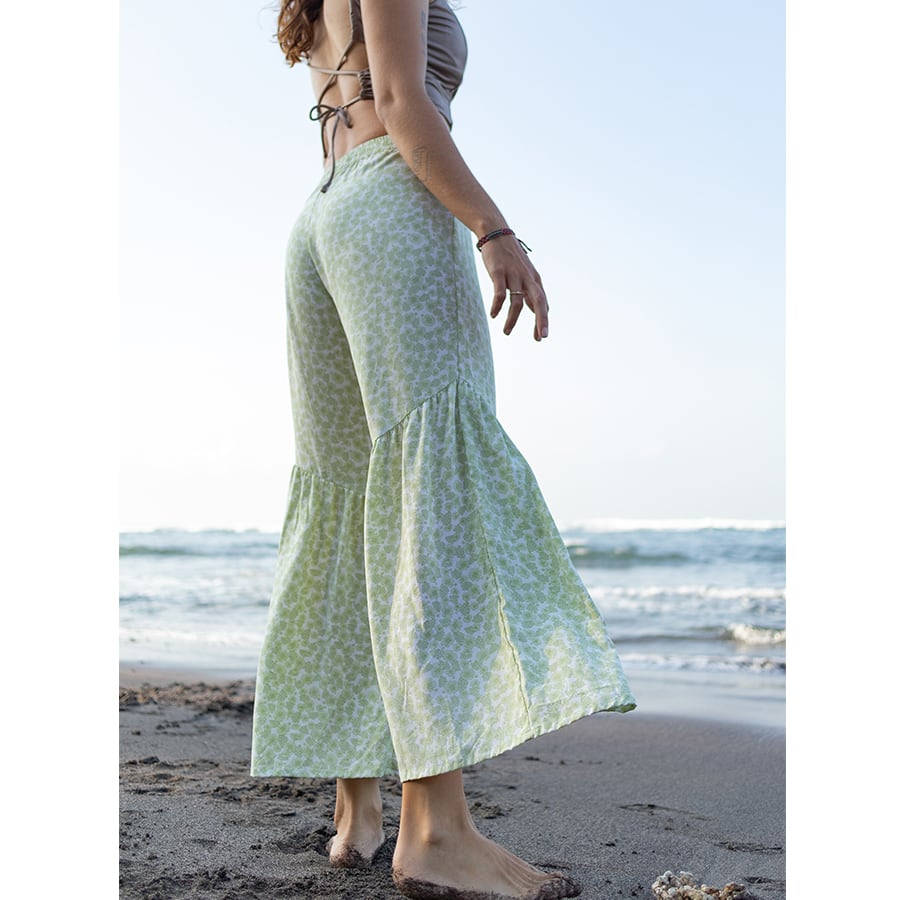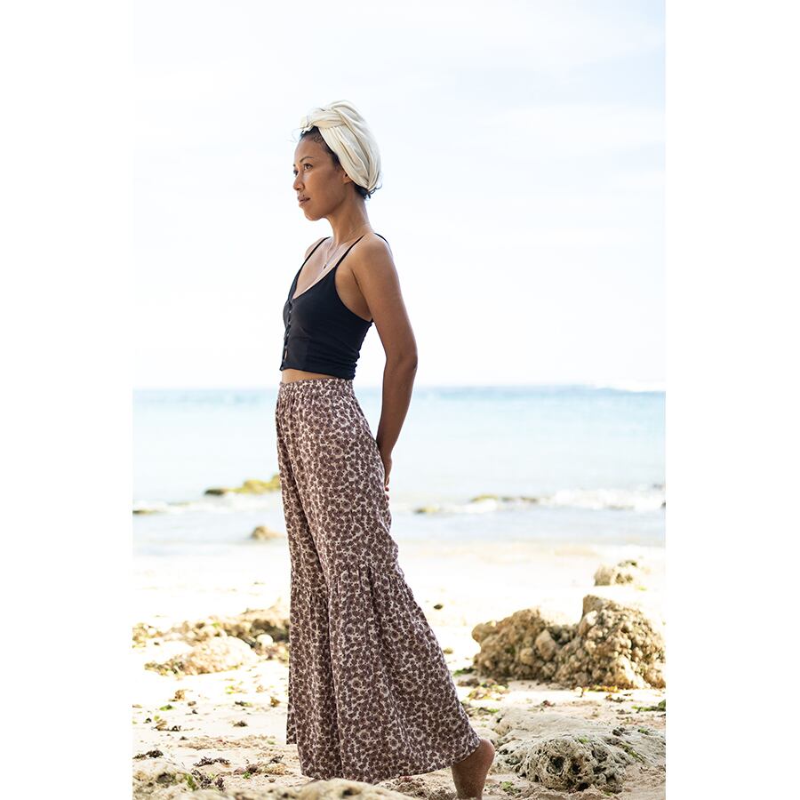 足が細く長くみえるように、アシンメトリーでフリル切り替えにしたけど、ゆったり&ボヘミアン感は出るように仕上げました。