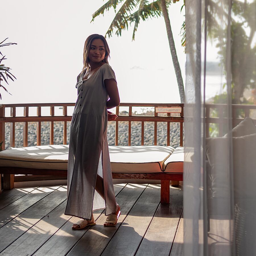 水着の上から着ても、海周りで涼しく、夏ムード満点。