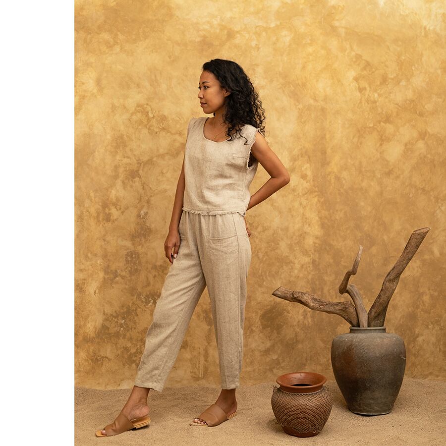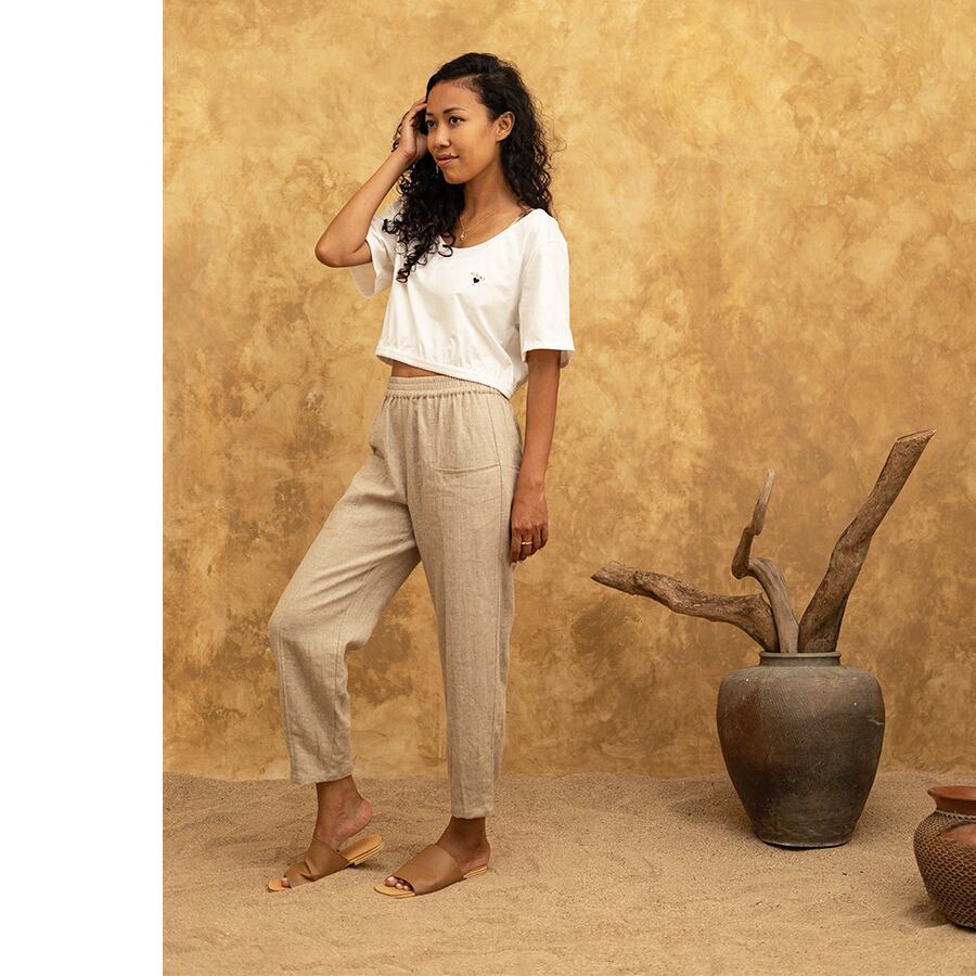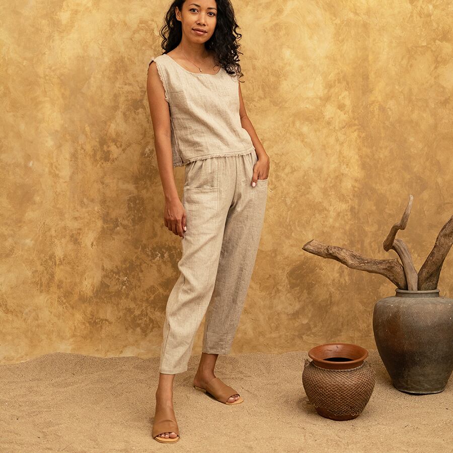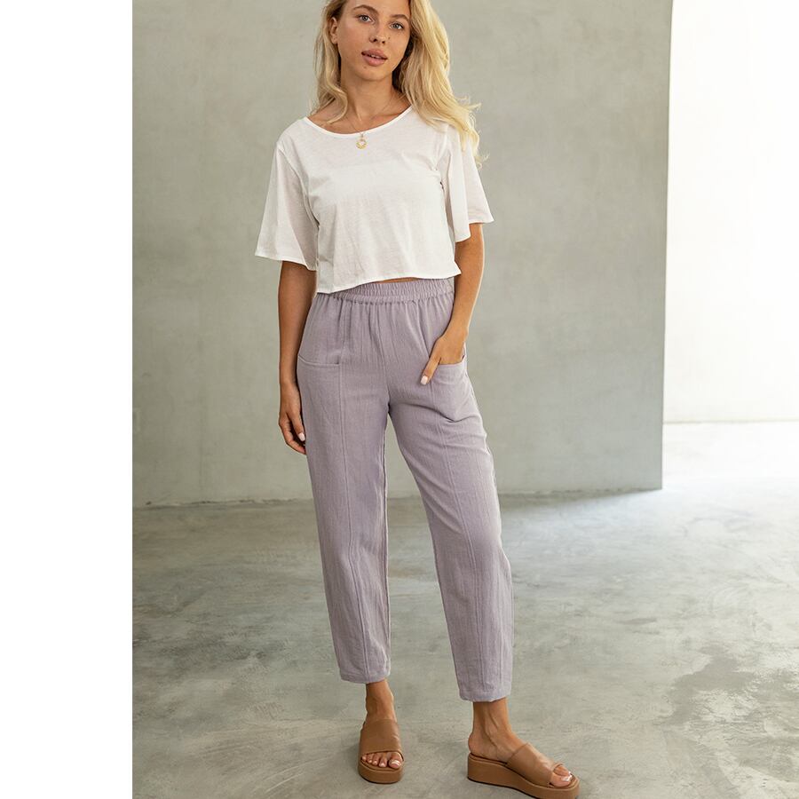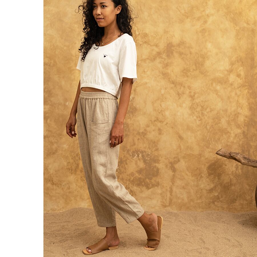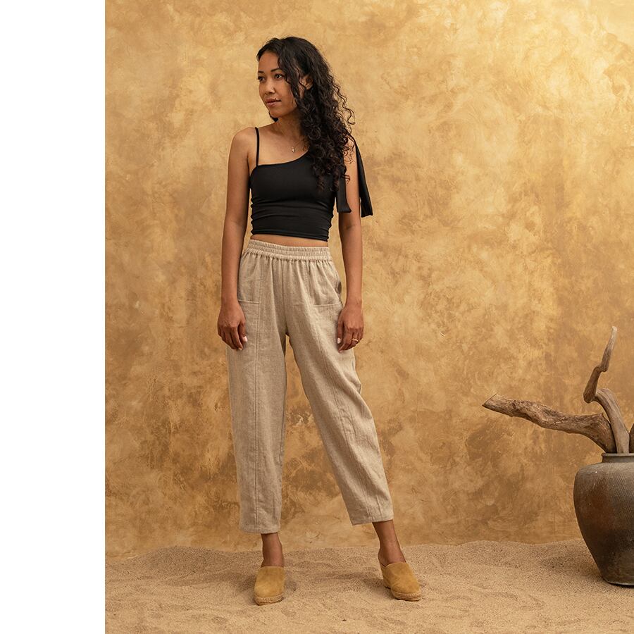 形が綺麗なストレートだけど、ちょっとアンクル丈がつぼまっているパンツ。