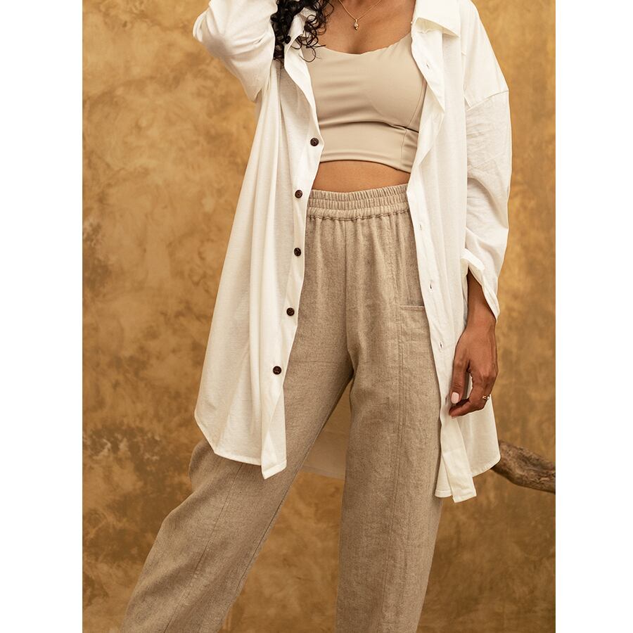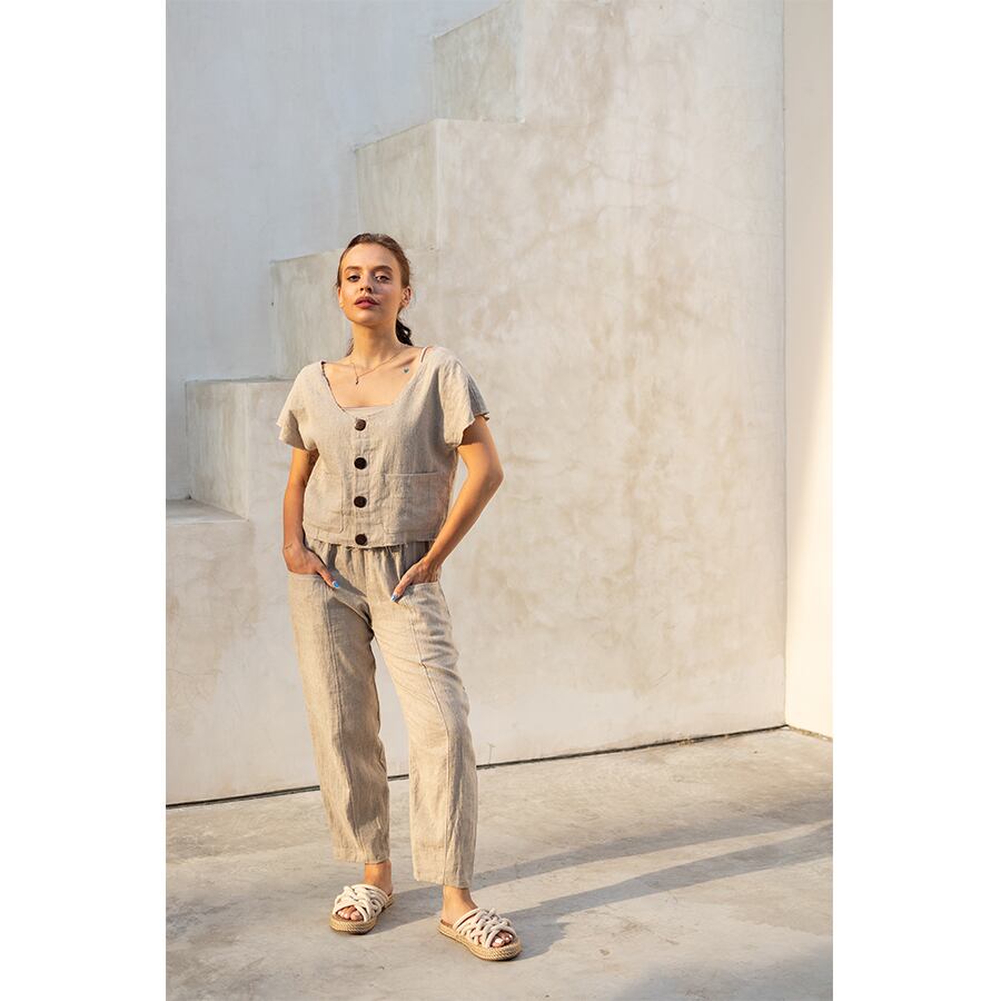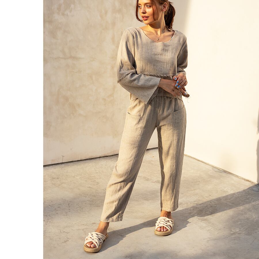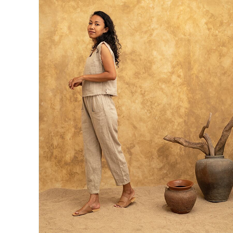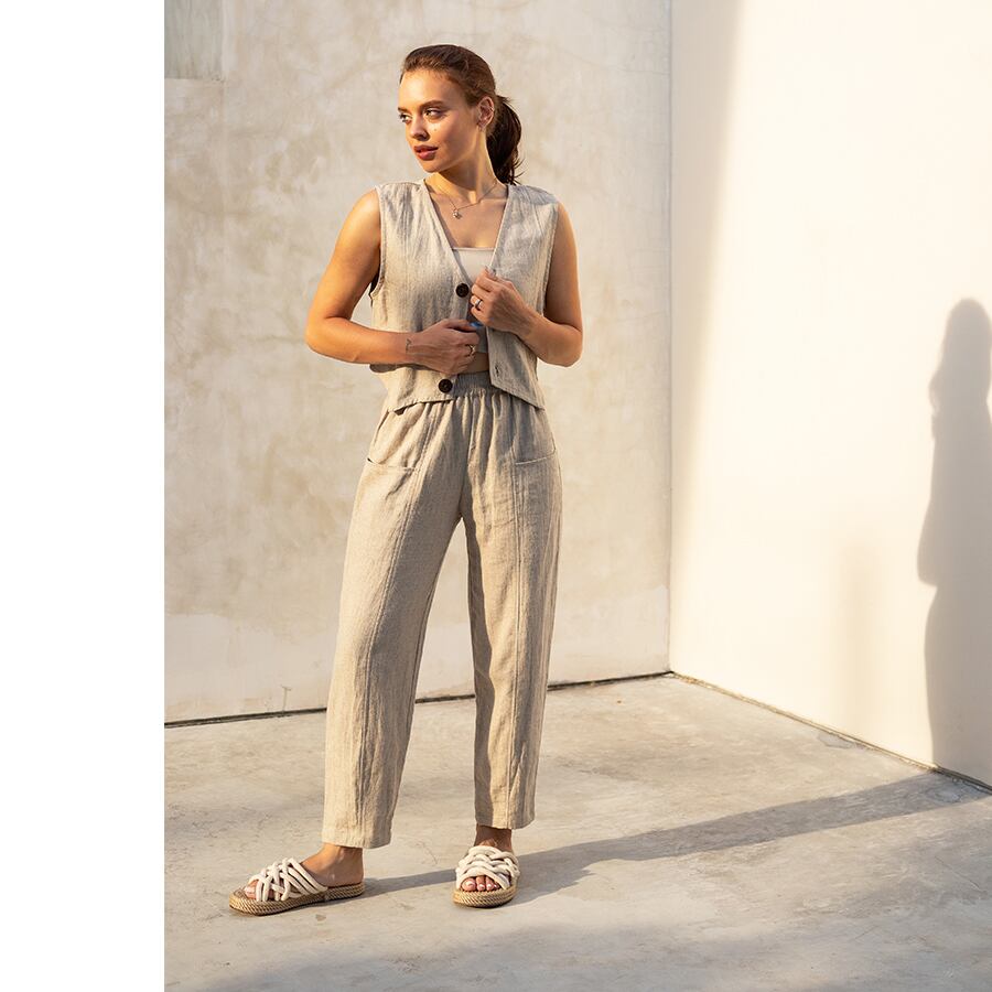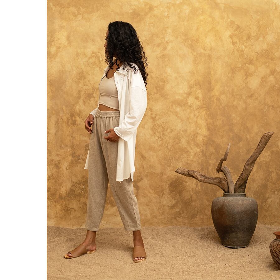 形が綺麗なストレートだけど、ちょっとアンクル丈がつぼまっているパンツ。