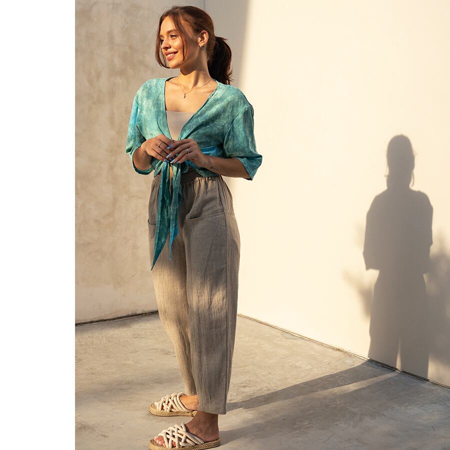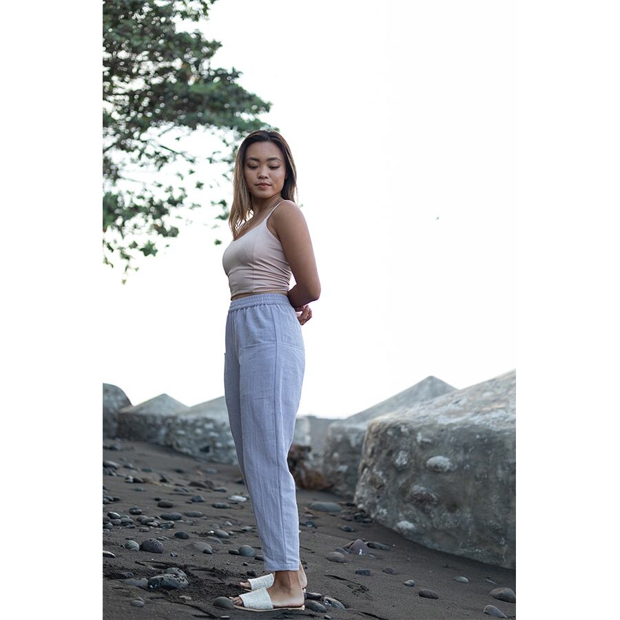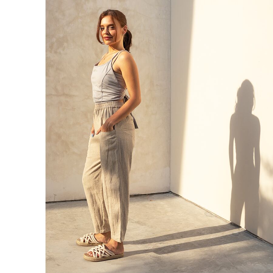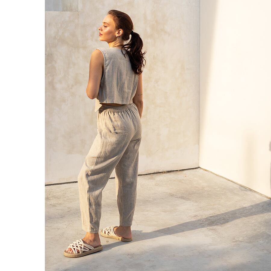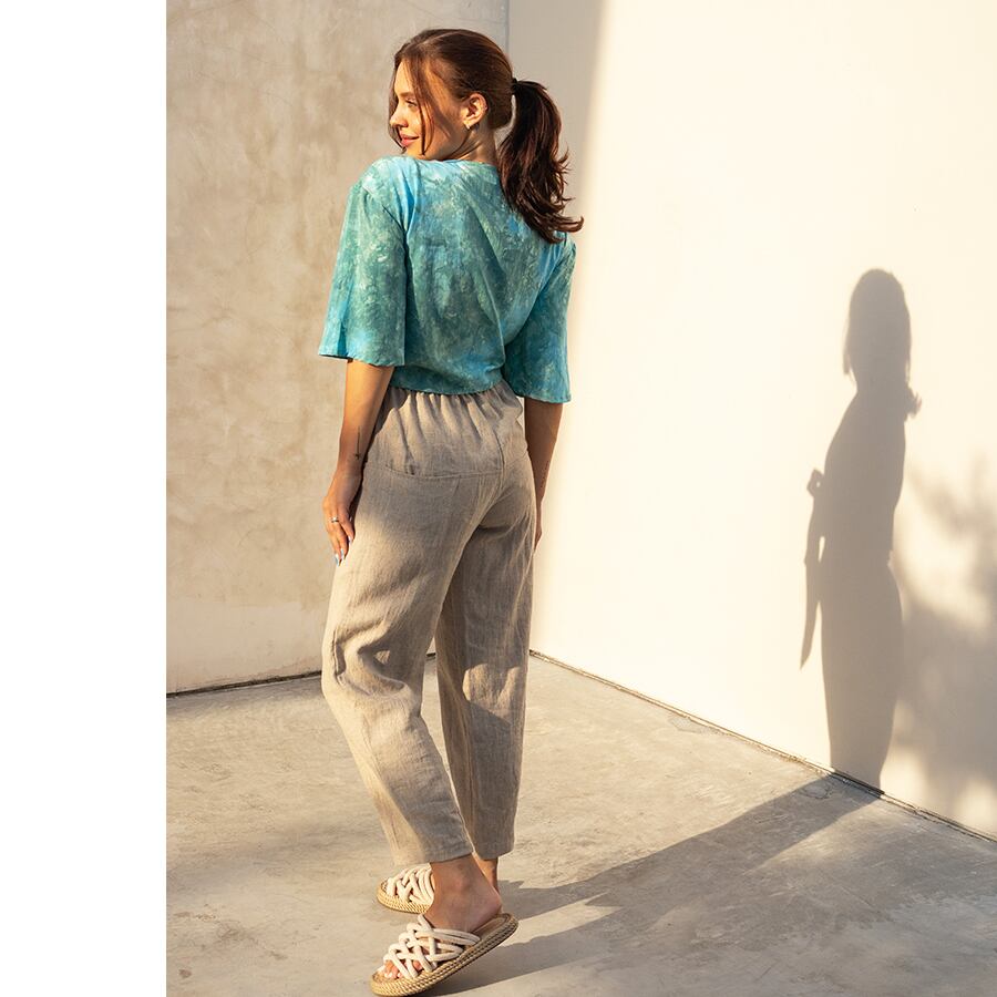 ★ウェスト(ゴム):約28㎝、裾幅:約15㎝、丈:約89㎝(ゴム入れてサイドで測定)、前股上:約28㎝、後股上:約36㎝、わたり:約27㎝