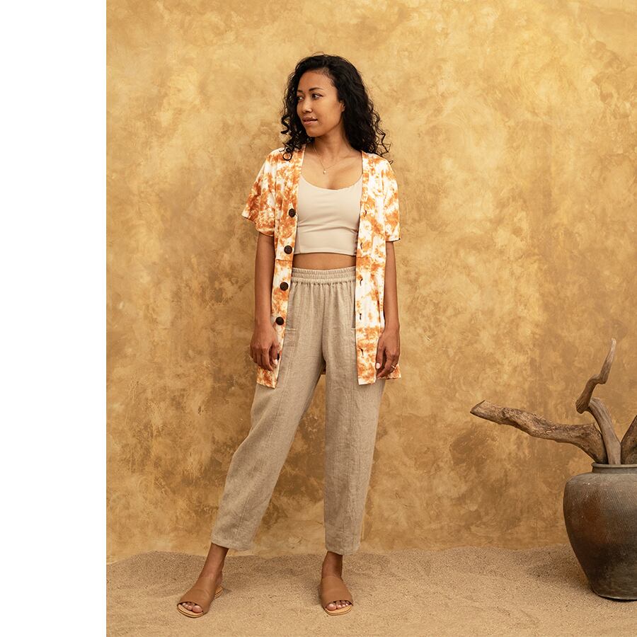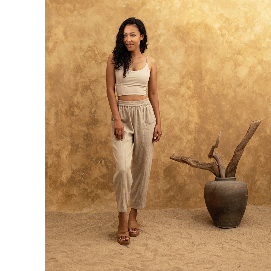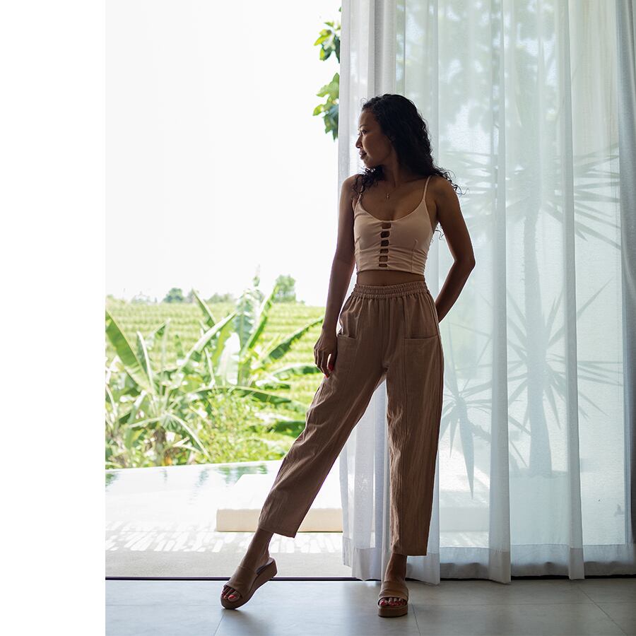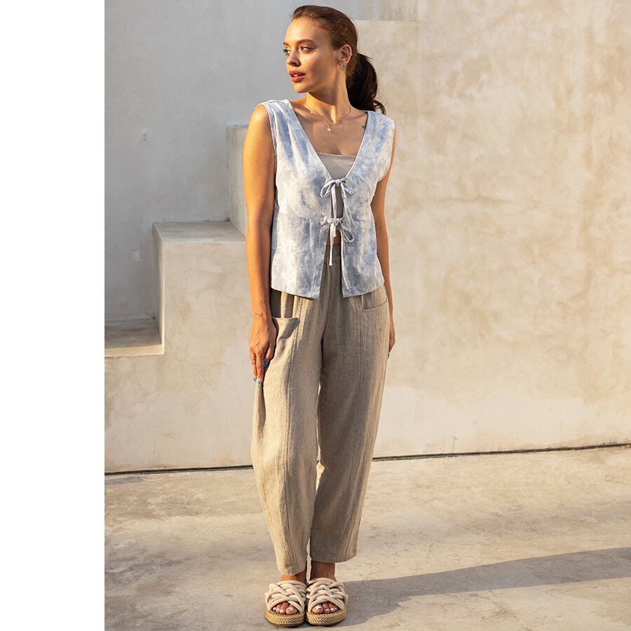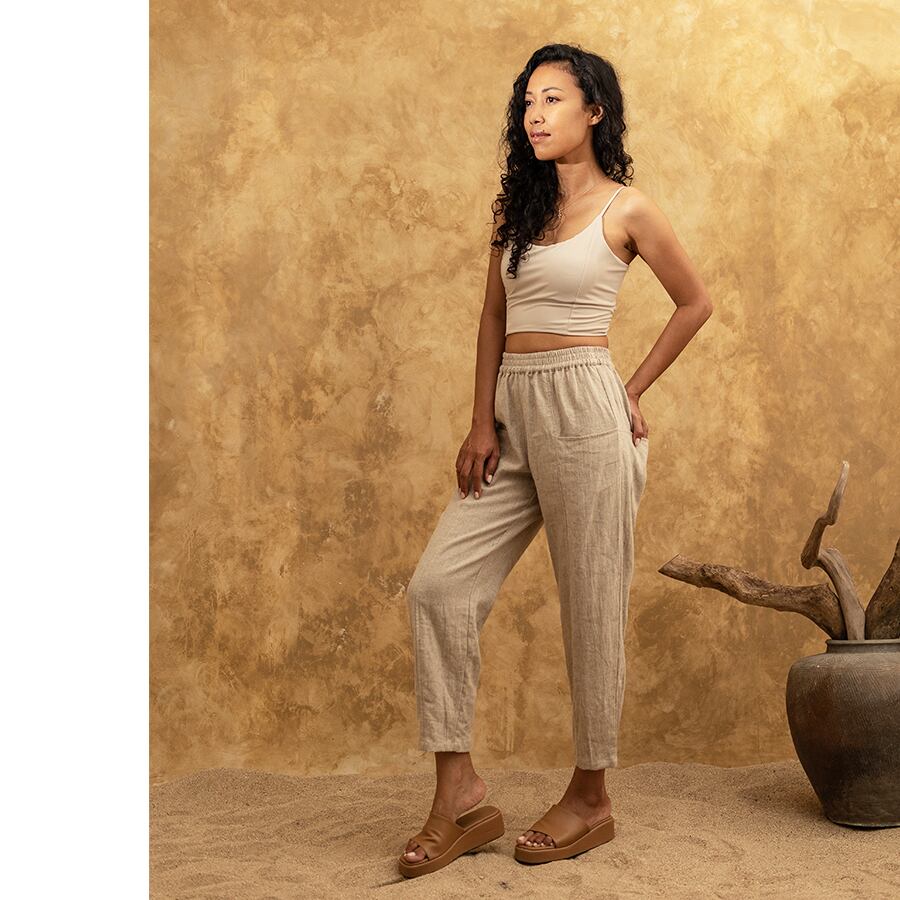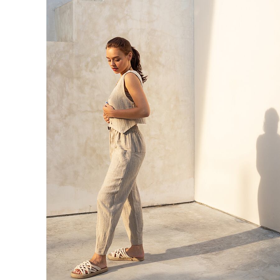 ★ウェスト(ゴム):約28㎝、裾幅:約15㎝、丈:約89㎝(ゴム入れてサイドで測定)、前股上:約28㎝、後股上:約36㎝、わたり:約27㎝