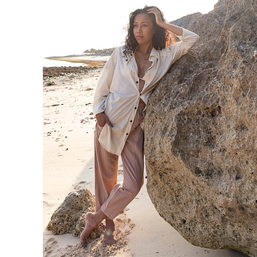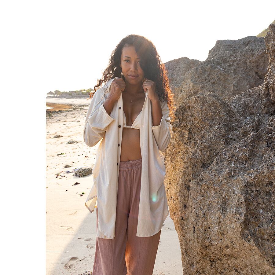 With ウェールシャーク ロングシャツ, MARY bikini top & AURORA bikini top
