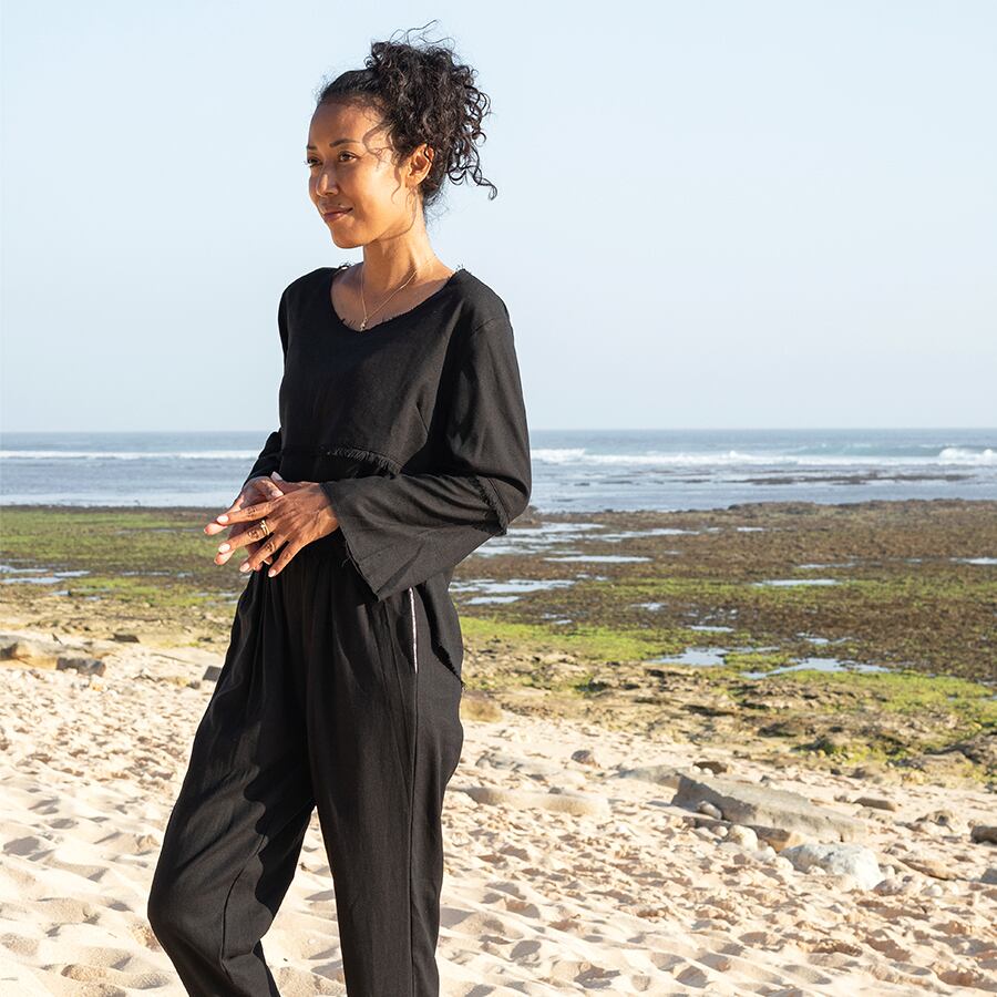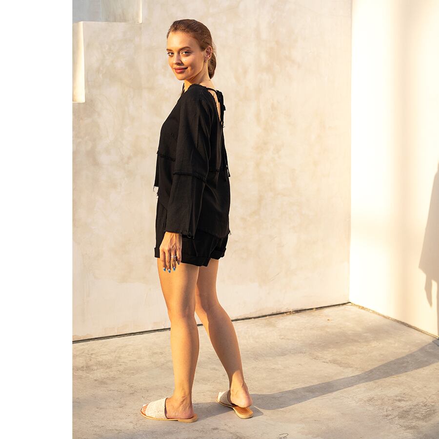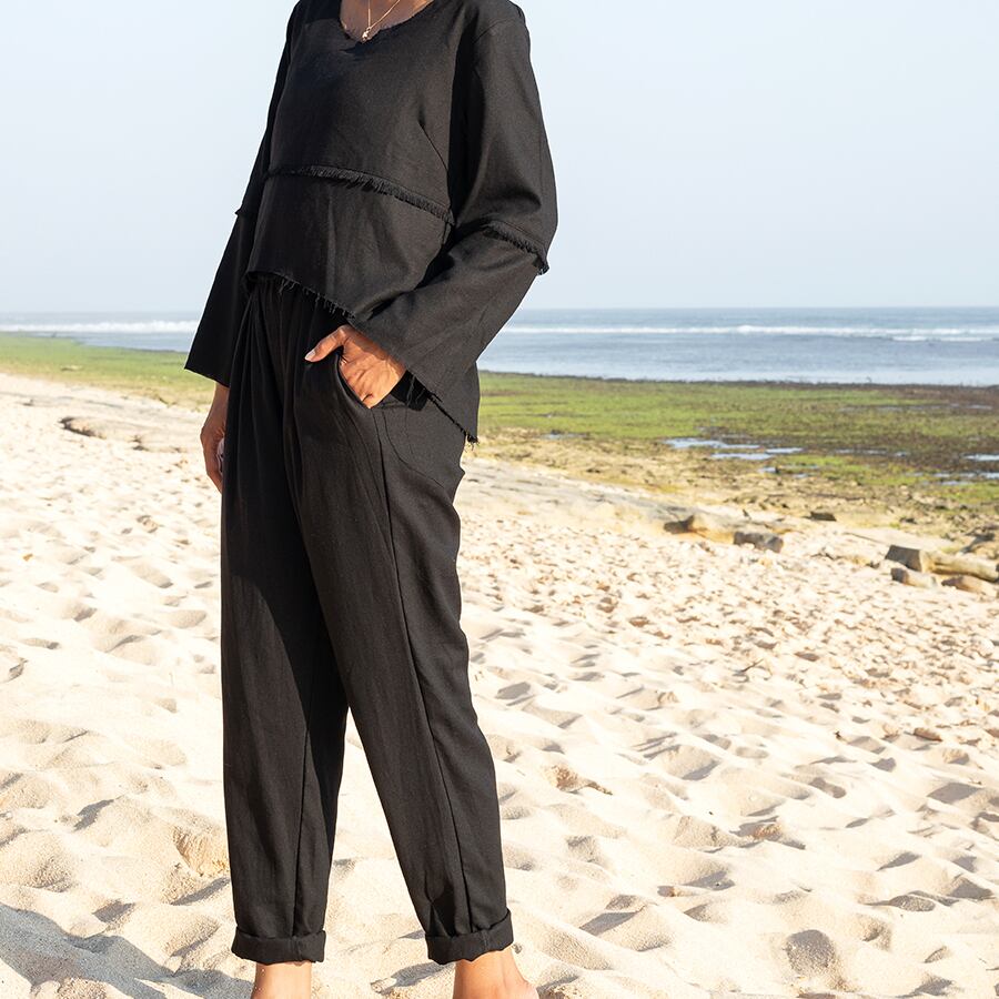 ブラックは、レーヨンリネン。