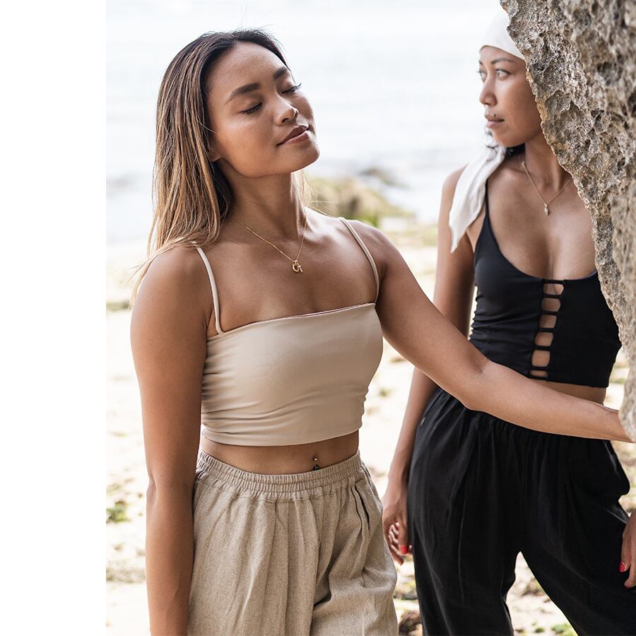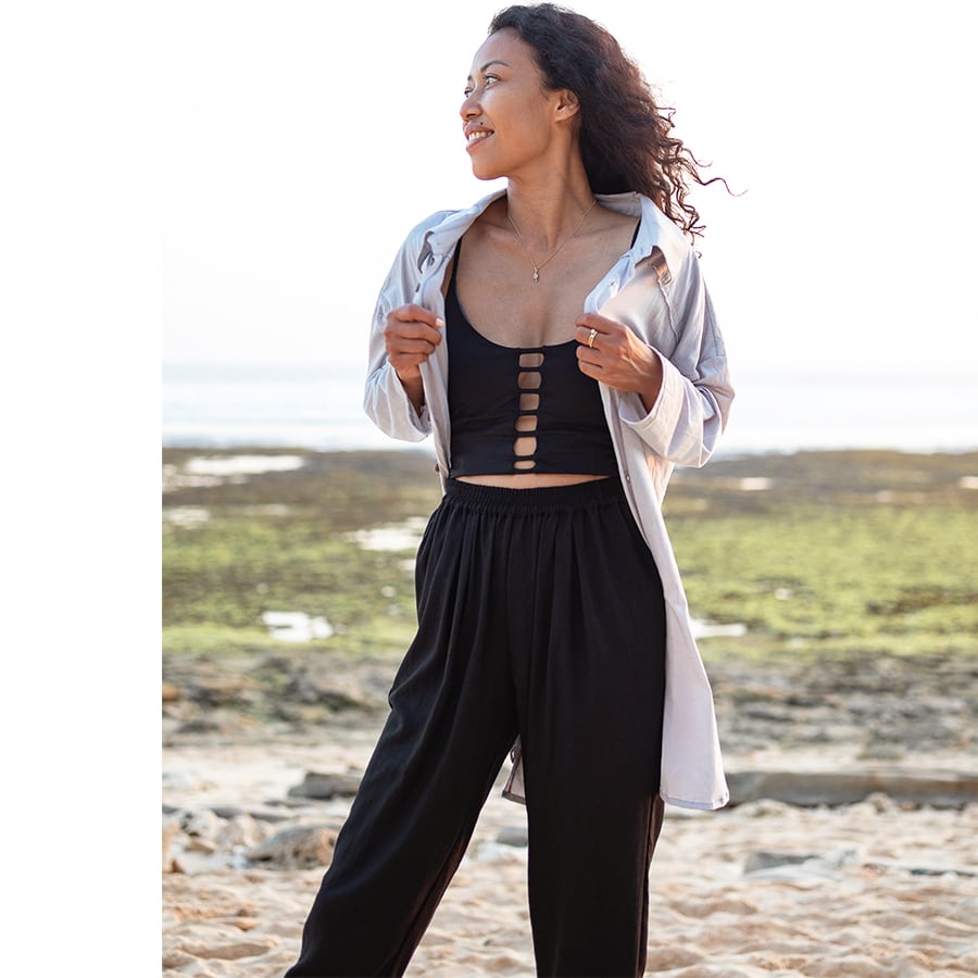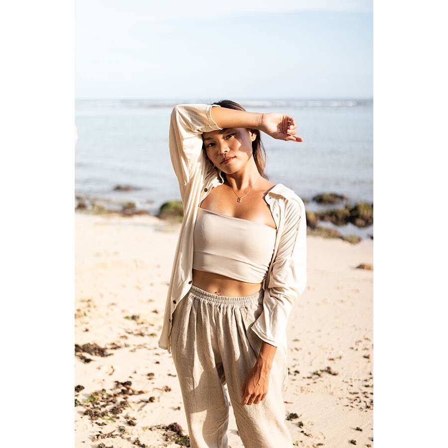 With メデウィ ボタンダウン キャミソール & MONICA bikini top