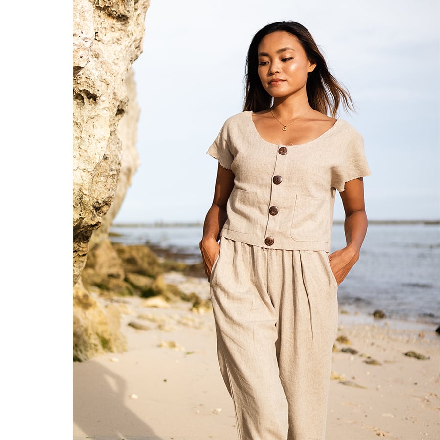 麻バージョンのテーパードパンツをもう一度是非!というお客様が多く、リピートいたしました。