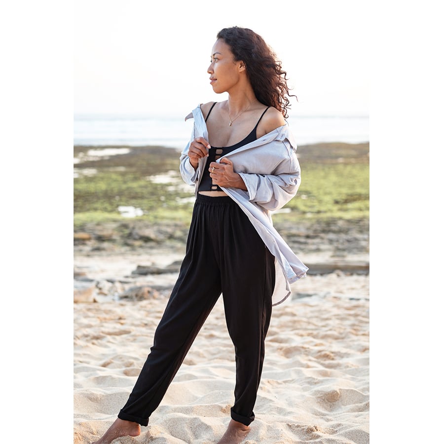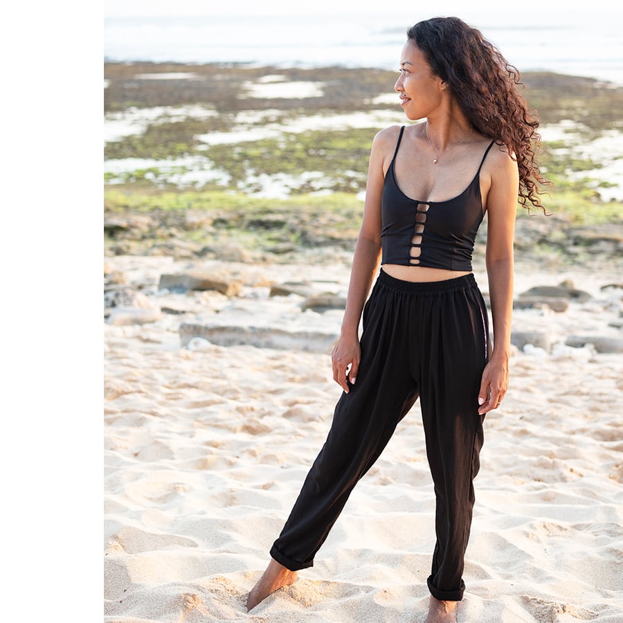 ウェスト(ゴム仕様):約25㎝、丈:約120㎝、前股上:約26㎝、後ろ股上:約34㎝