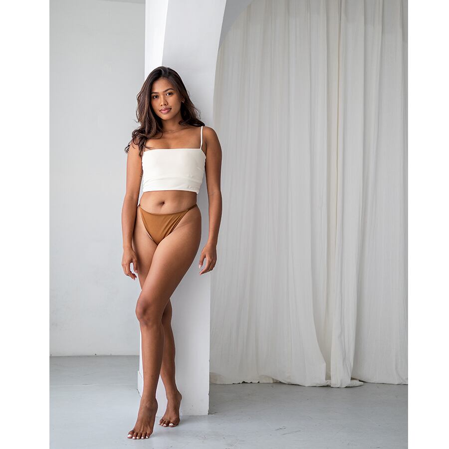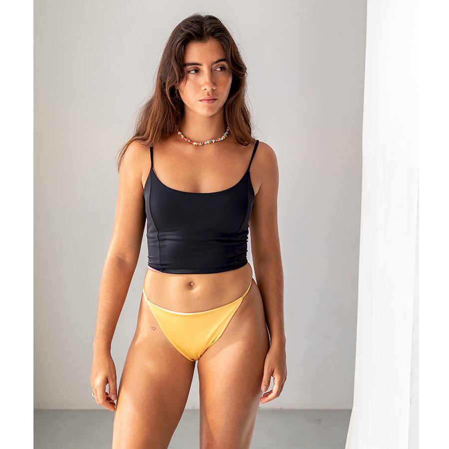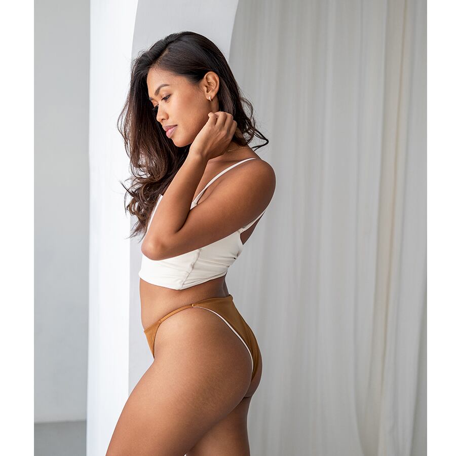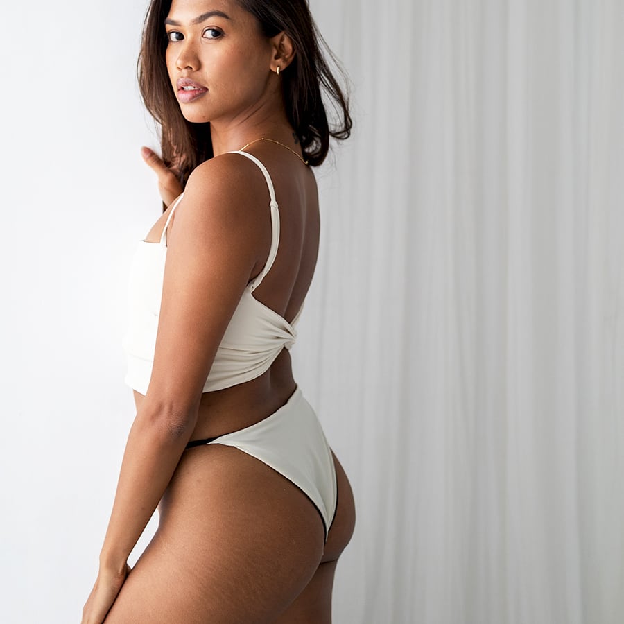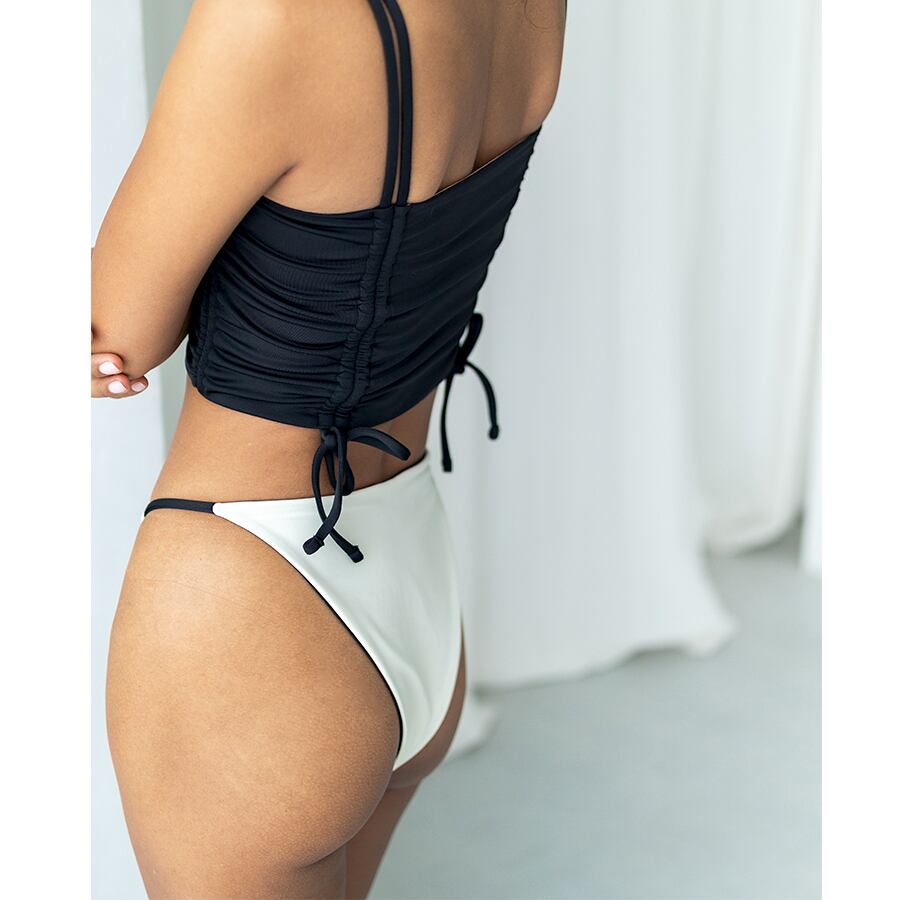 セクシーになりすぎない、シンプルなリバーシブルボトム。