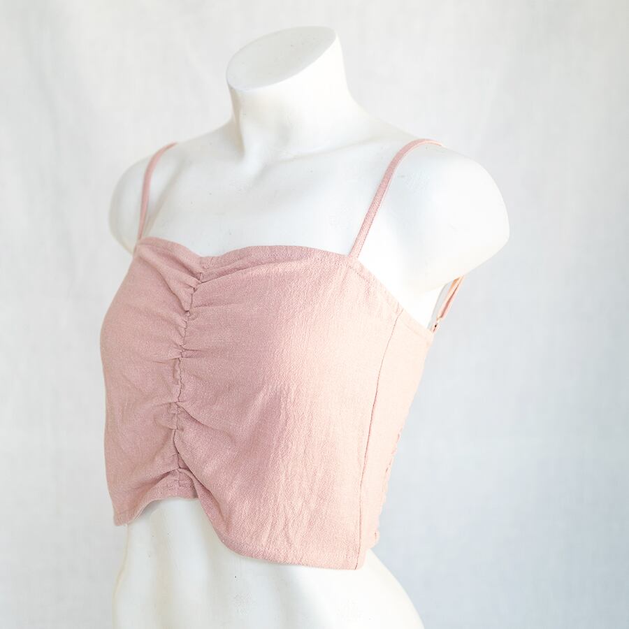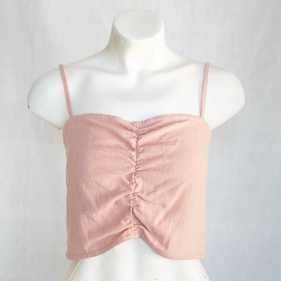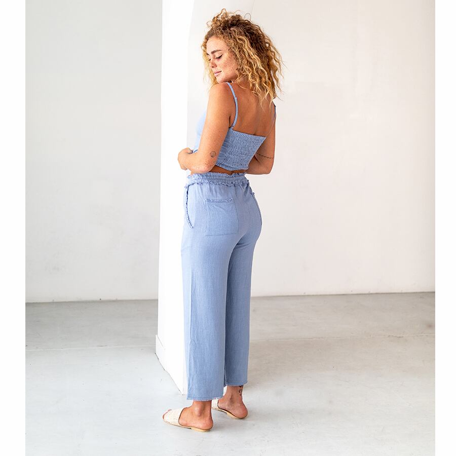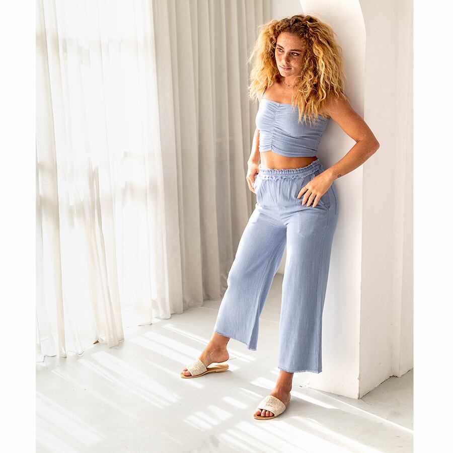 クロップド丈で、ハイウェストと相性がよいサイズ感です。