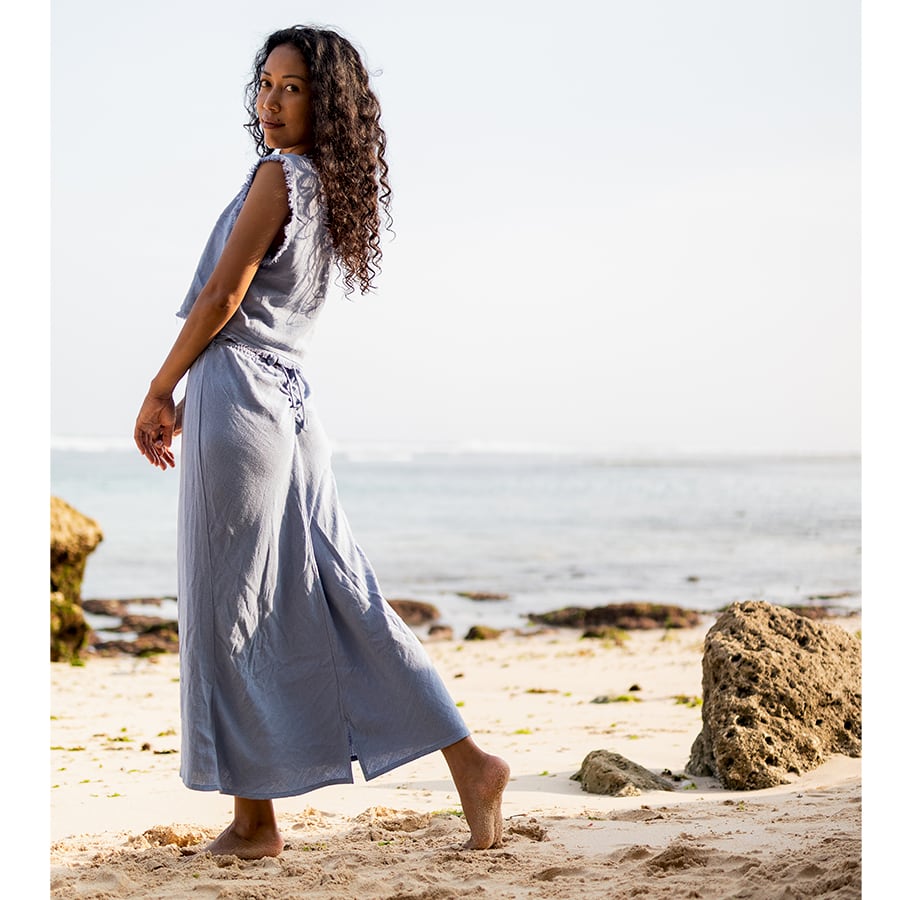 セットアップで着るのもおススメ、クロップド丈ビキニトップスとコーデするのもおススメ。