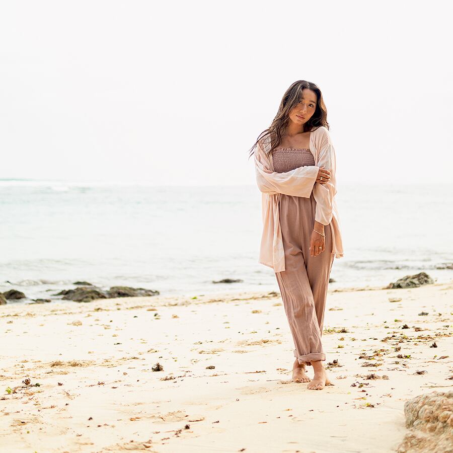 楽ちんだけど、ヘルシーセクシーなベアトップロンパースをデザインしました。