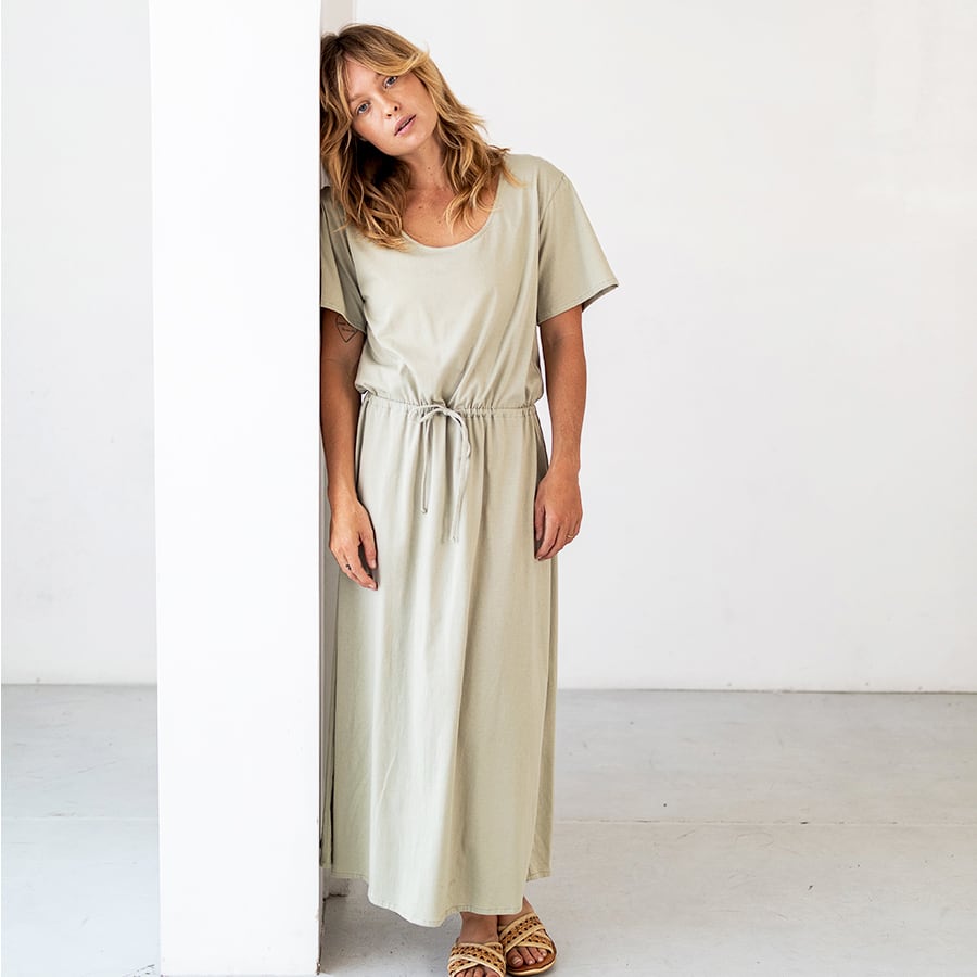 背中が綺麗にみえるロング丈ワンピースをデザインしました。